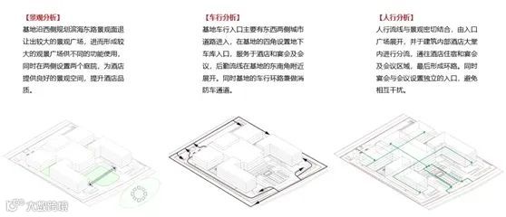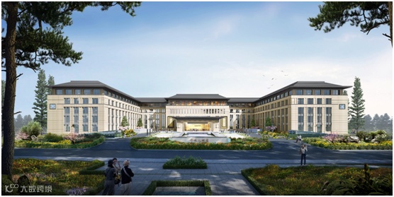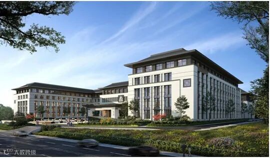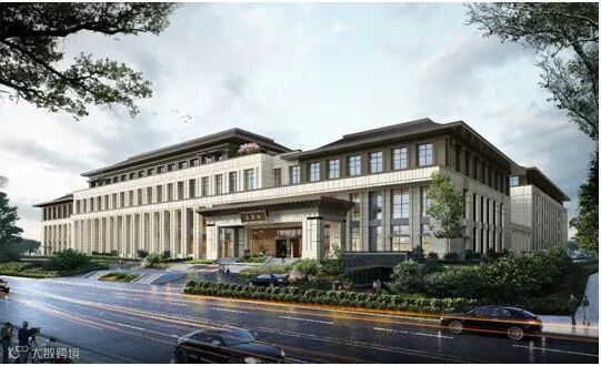 建筑设计之初,通过对基地的研究及周边现状的分析,并借鉴中国传统建筑“对称式”的空间布局及府院形制的“礼序”规划,形成整体呈对称布置的建筑形体,而呈怀抱状的主入口空间,更体现华建大酒店“以礼待客”的理念,塑造一种“中轴对称、礼迎八方”的建筑氛围。