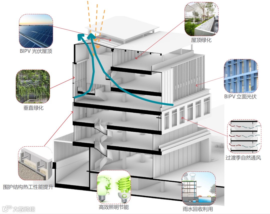 项目集成建筑光伏一体化、光储直柔、直流配电、新型光伏遮阳以及超低能耗的围护结构等低碳技术,将低碳节能技术与建筑美学、建筑功能有机结合,并协同联动区域内绿色低碳产业集群优势,建立绿色供应链,在“光储直充”、绿色建材等方面充分发挥绿色资源整合能力,为打造近零能耗示范项目及推动绿色产业的发展提供了实施路径参考。