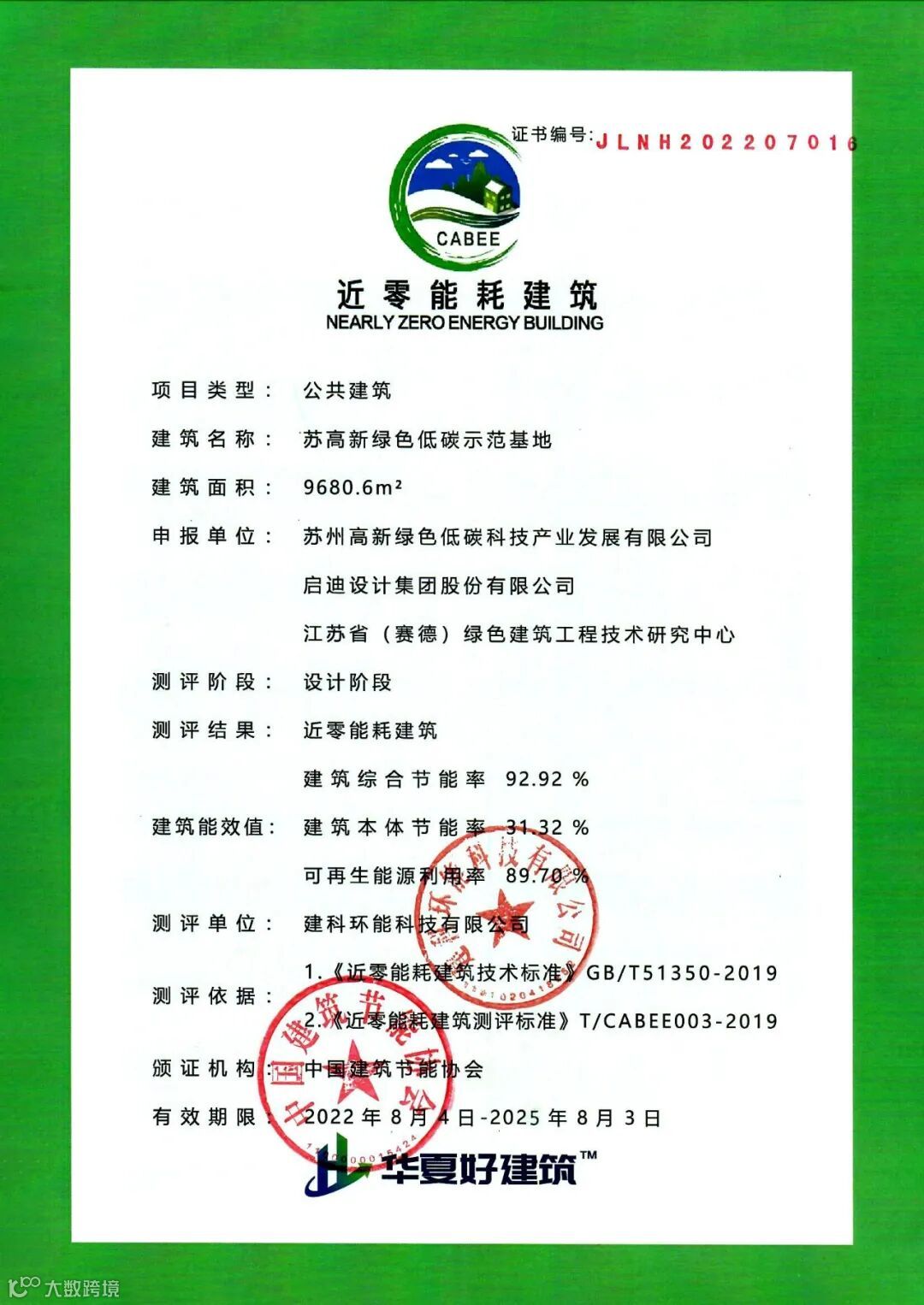 近日,由启迪设计集团设计咨询的苏高新绿色低碳示范基地项目顺利通过评审,获得近零能耗建筑标识证书。项目通过整体优化设计,建筑综合节能率达到了93%,可再生能源利用率达到89%。
