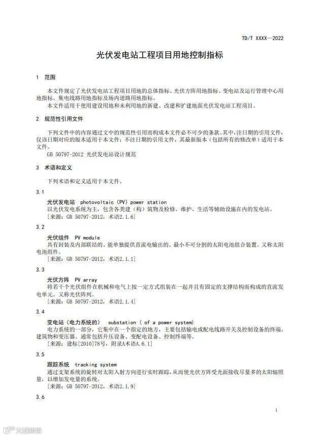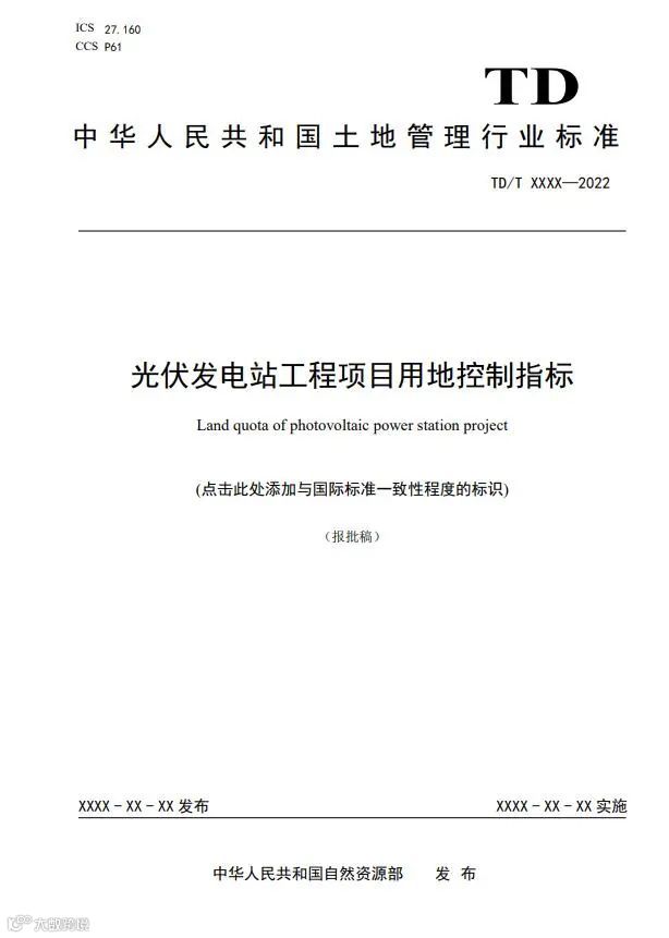《光伏发电站工程项目用地控制指标》等3项行业标准报批稿公示