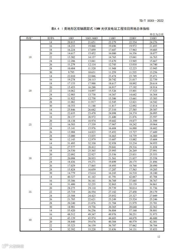 12月5日,自然资源部发布《光伏发电站工程项目用地控制指标》等3项行业标准报批稿公示。规定了光伏发电站工程项目用地的总体指标、光伏方阵用地指标、变电站及运行管理中心用地指标、集电线路用地指标及场内道路用地指标。