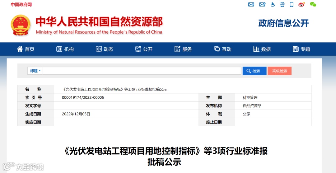 按照自然资源行业标准制定程序要求和计划安排,自然资源部组织有关单位制定了《光伏发电站工程项目用地控制指标》等3项行业标准。现已通过全国自然资源与国土空间规划标准化技术委员会审查,拟公示后报部审定发布实施,现予公示,公示时间为5个工作日。