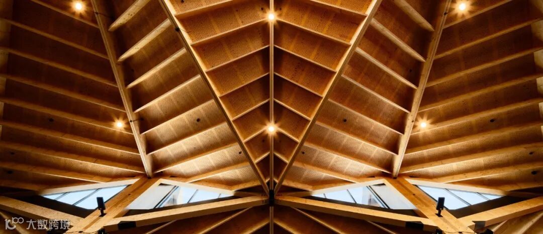 与简单的平面和立面相比,屋顶高度复杂,视觉上引人注目;参考周围的山脉,以一种恒定的、有节奏的模式横跨建筑的长度。在内部,形成屋顶的木材结构以自然的温暖、纹理和尺度最为迷人,令人流连。