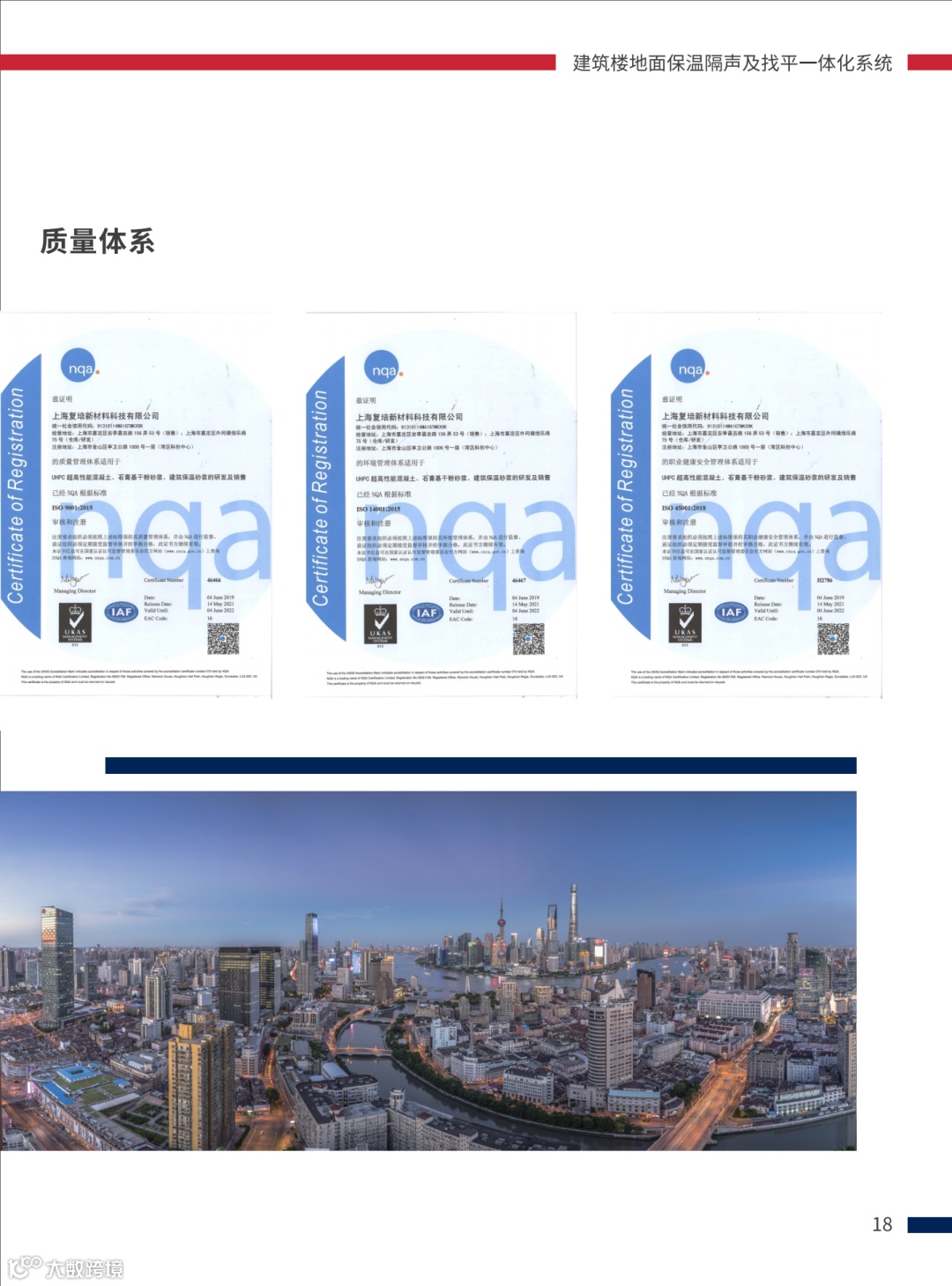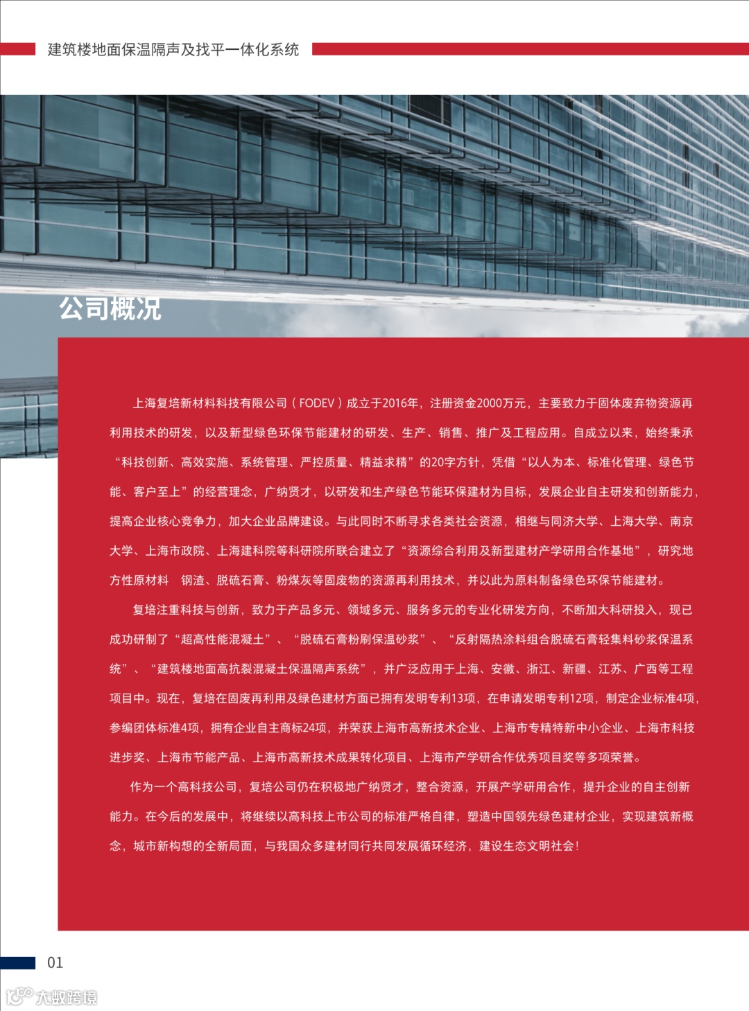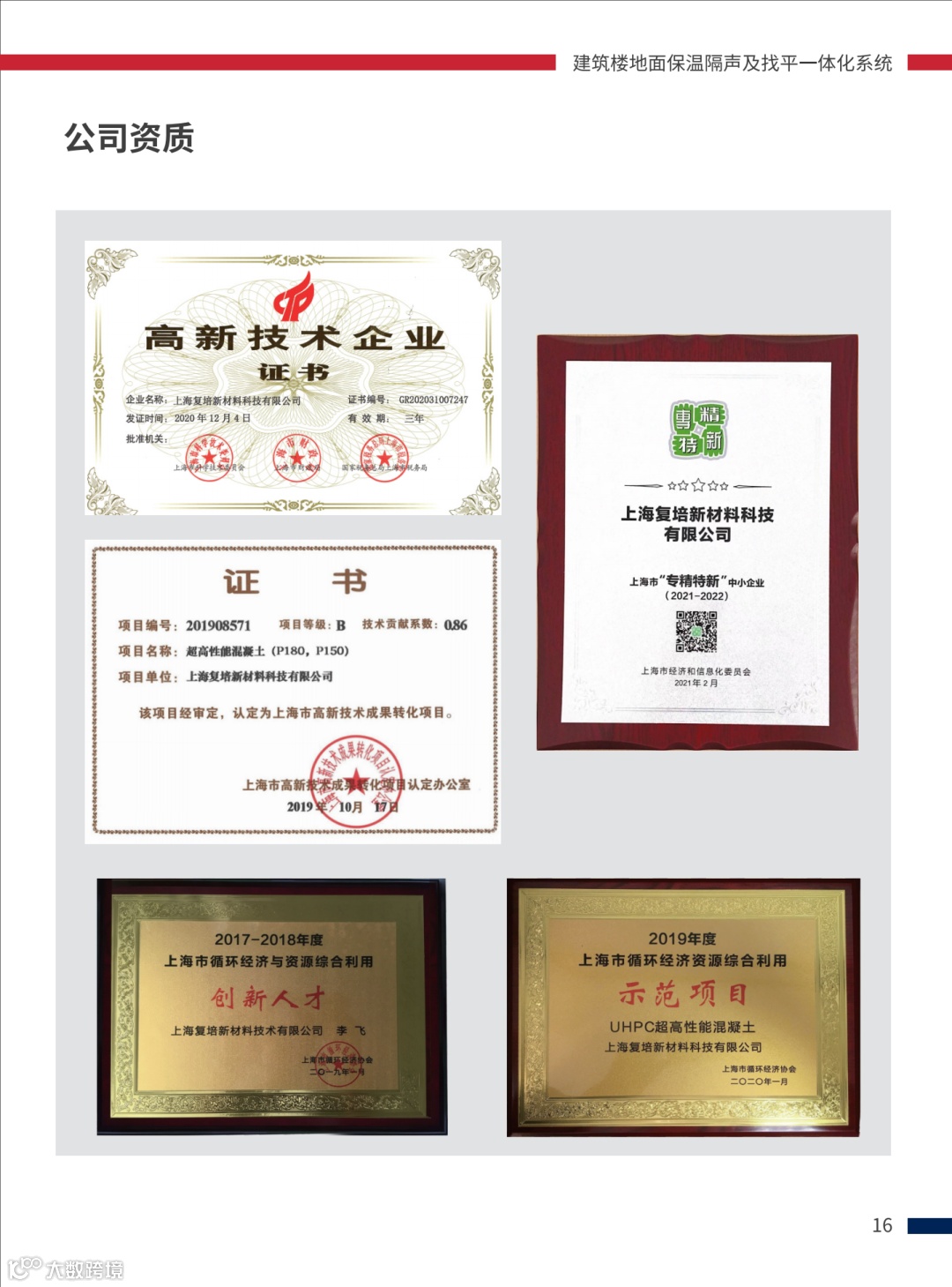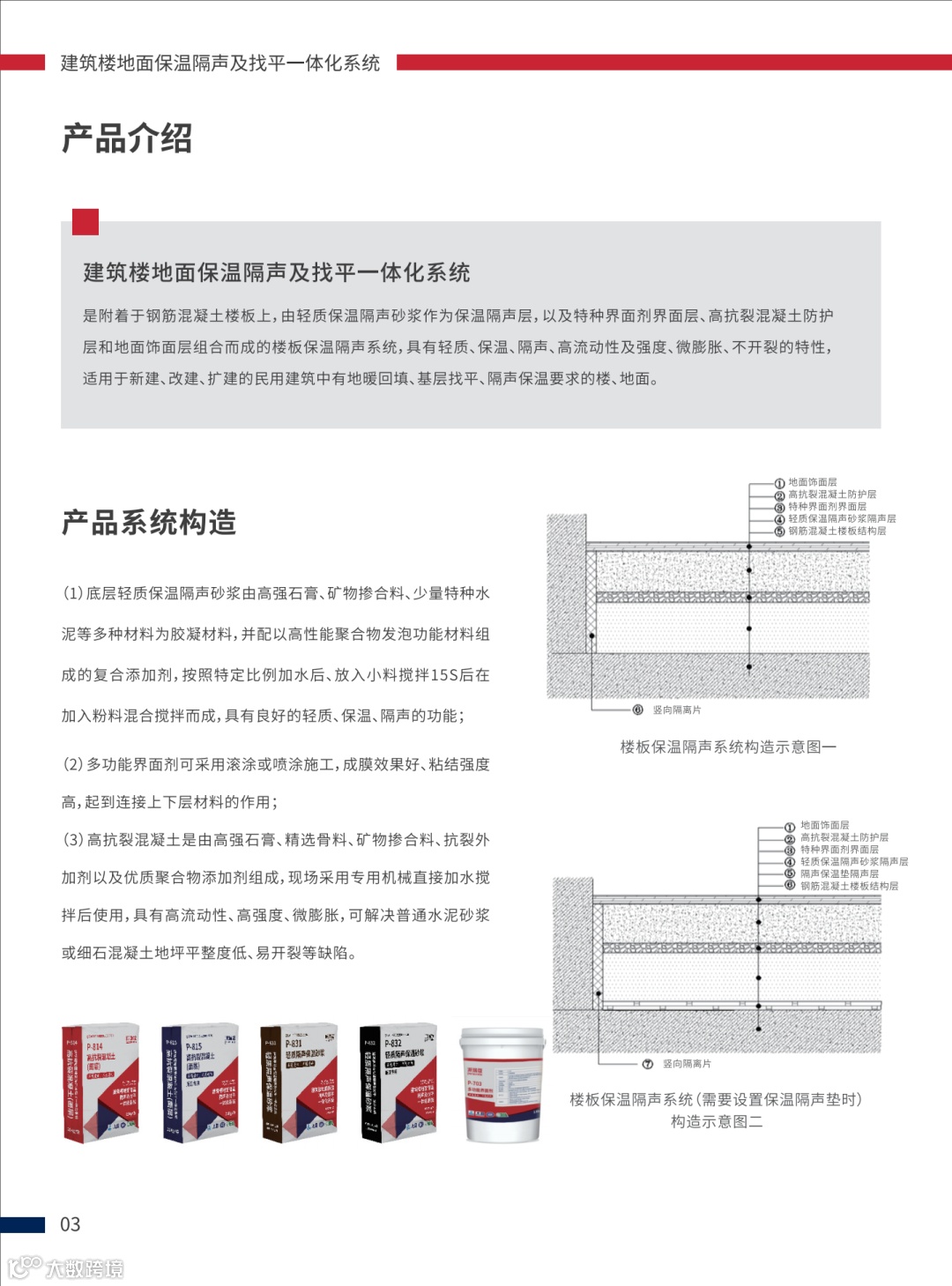 此系统由上海复培新材料科技有限公司研发,产品是置于钢筋混凝土楼板上,由轻质保温隔声砂浆(必要时加隔声保温垫)作为保温隔声层,以及竖向隔离片、特种界面剂、高抗裂混凝土和饰面层等组合而成的楼板保温隔声系统。