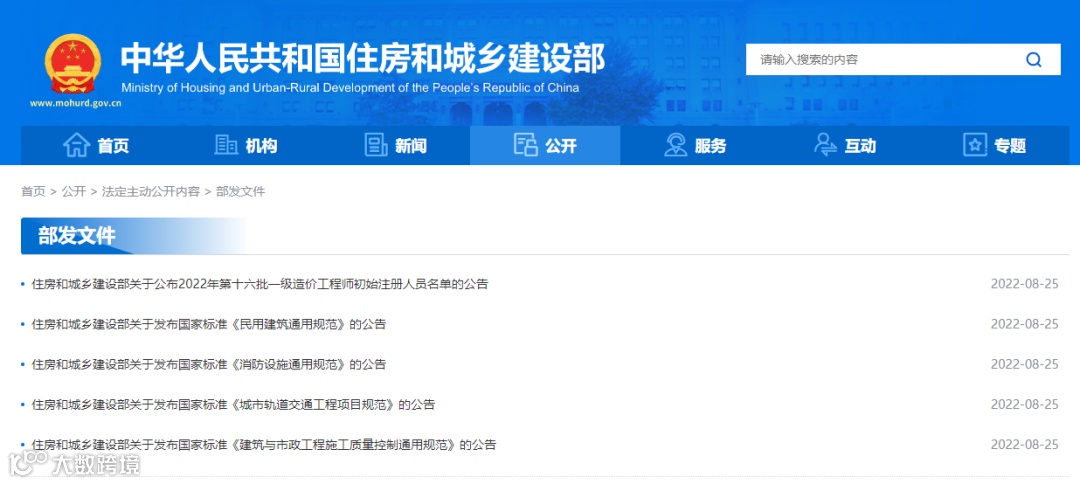 8月25日,住建部公布四项国家标准,分别为《民用建筑通用规范》《消防设施通用规范》《城市轨道交通工程项目规范》《建筑与市政工程施工质量控制通用规范》。