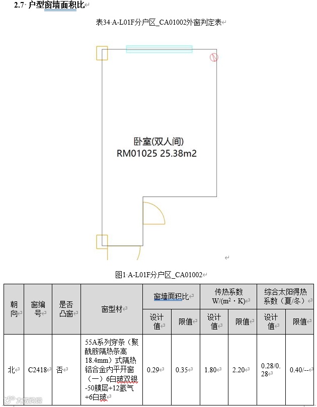 图8 软件输出户型窗墙比及窗户传热系数和太阳得热系数判定