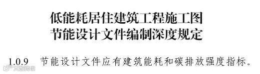 《低能耗居住建筑工程施工图节能设计文件编制深度规定》中要求“1.0.9 节能设计文件应有建筑能耗和碳排放强度指标”,另外节能设计审查信息表中也需要填写“建筑能耗综合值”和“碳排放强度”。