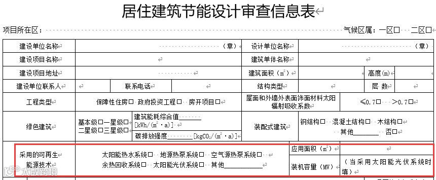 图12 居建节能设计审查信息表中关于太阳能利用的要求