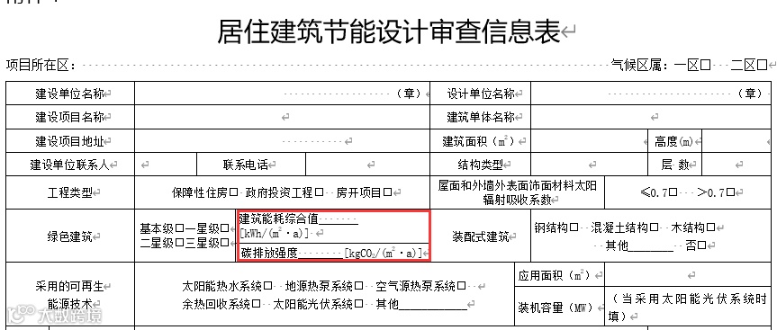 图10 居建节能设计审查信息表中关于碳排放指标的要求