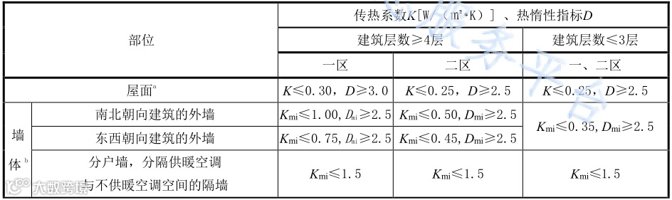 1)外墙的传热系数指的是不同朝向建筑的外墙,先判定建筑是何种朝向,例如某一区的南北朝向建筑,其各朝向的外墙传热系数限值均为1.0W/(㎡·K);
