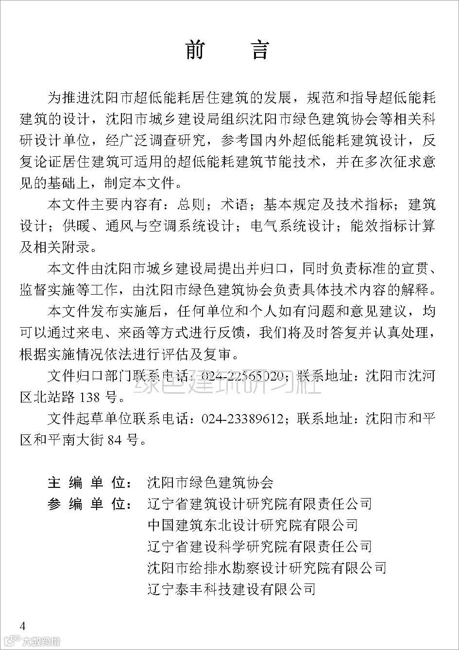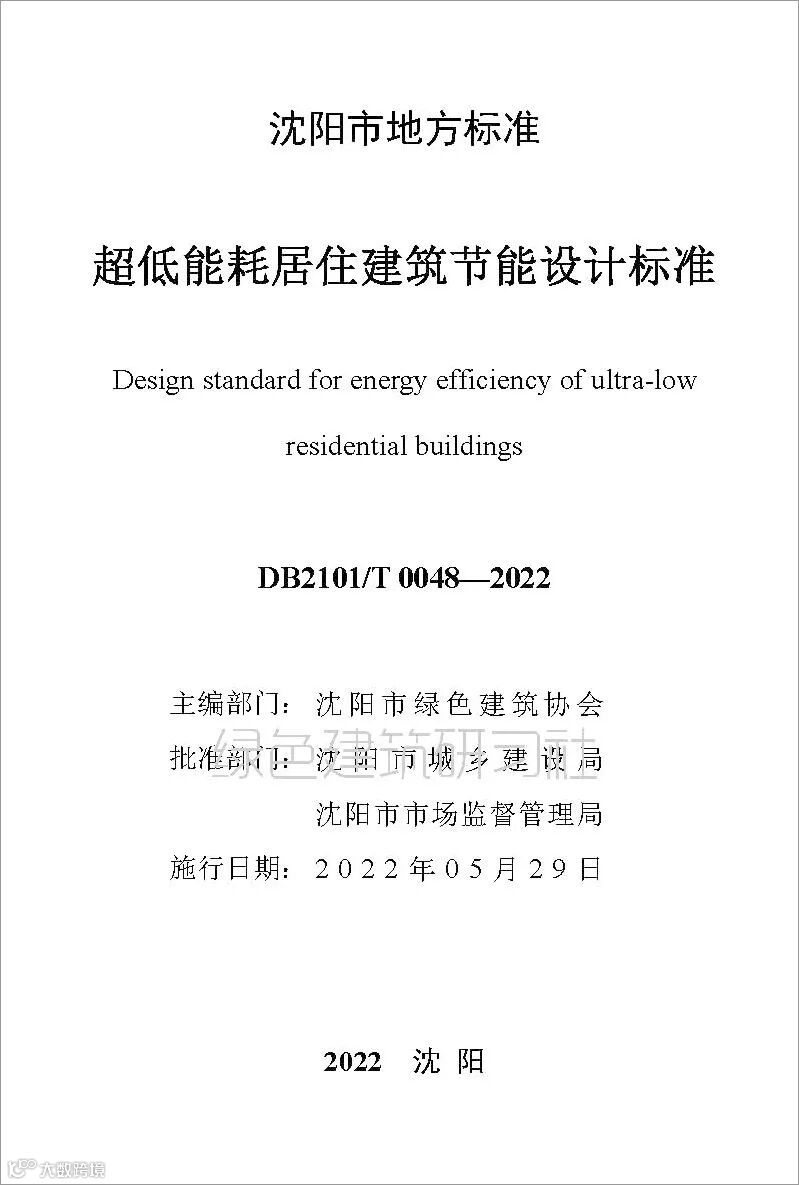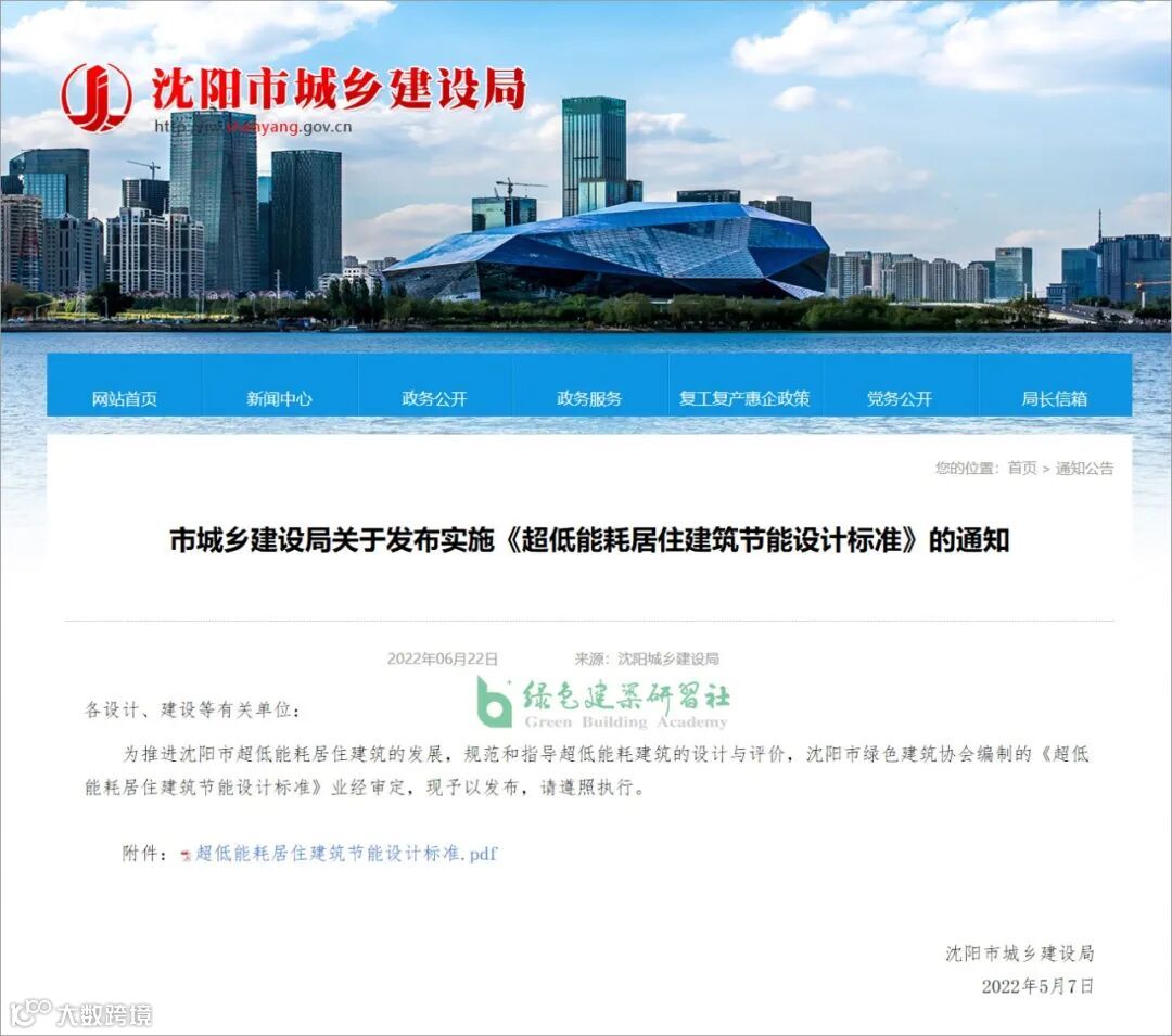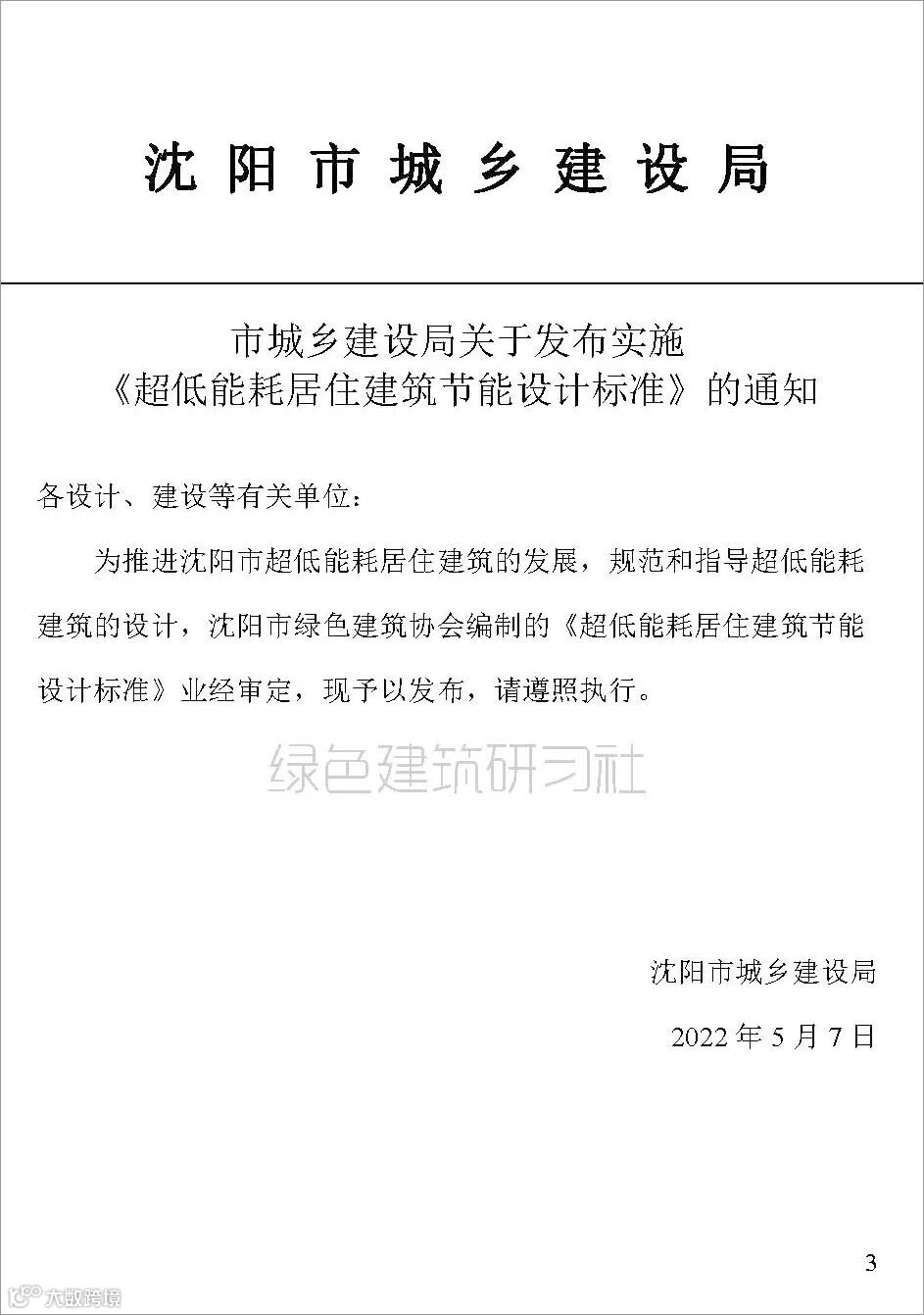 为推进沈阳市超低能耗居住建筑的发展,规范和指导超低能耗建筑的设计与评价,沈阳市绿色建筑协会编制的《超低能耗居住建筑节能设计标准》业经审定,现予以发布,请遵照执行。