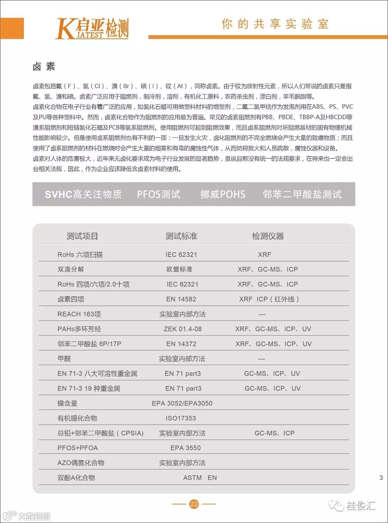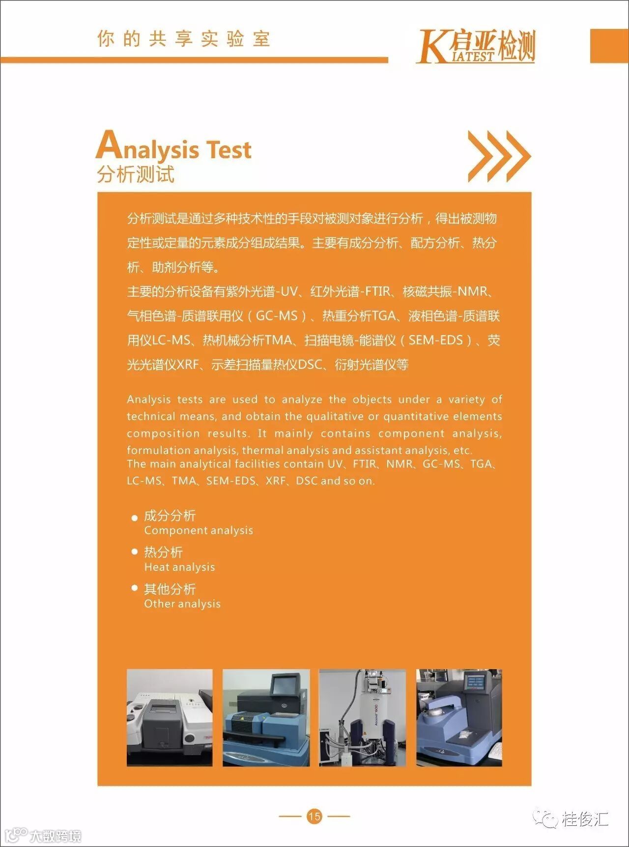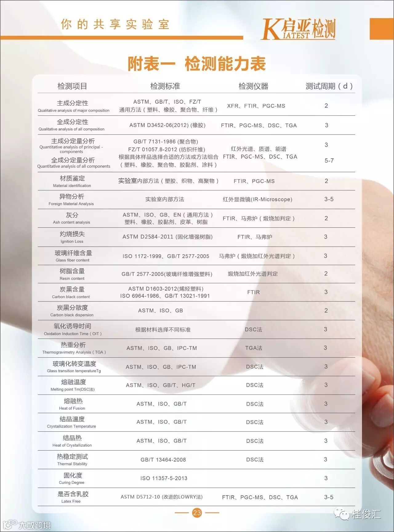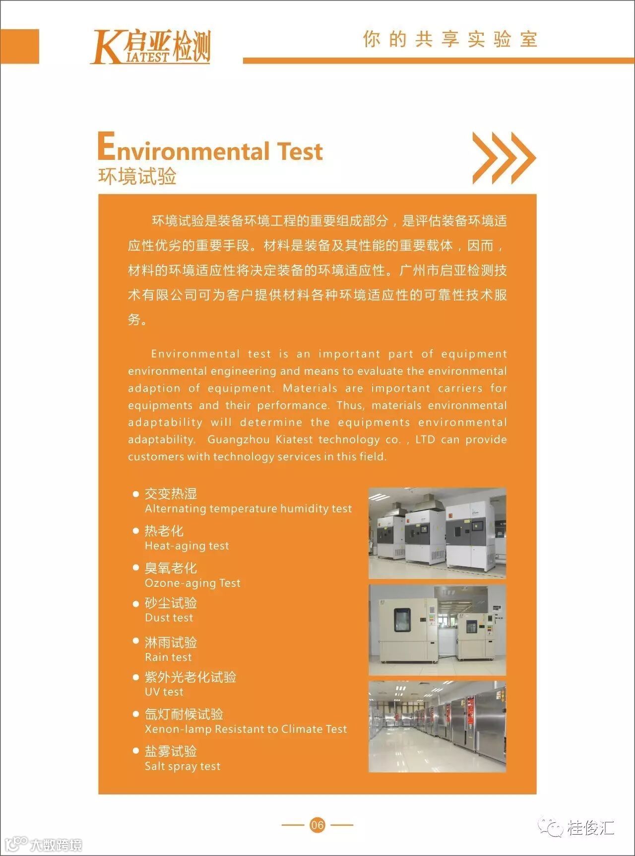 随着全球市场竞争的加剧,检测服务需求的不断提升,对检测设备与环境提出了更高的要求,以往实验室建设缺乏整体规划统筹、口径过窄、综合性差、利用率低等普遍现象已经严重制约了行业企业的发展。启亚检测依托集团设备优势,通过力学及模拟环境可靠性试验,为电子电器、汽车材料及零部件、高分子材料、机电机械等不同领域的客户提供专业、全面的可靠性检测试验、可靠性设计及工艺改进的系统解决方案,帮助客户了解产品性能和判断产品的责任方(客户的所有权与机密我们负责保密)。我们还通过不定期邀请大型检测设备供应商来进行技术培训,让客户都能够实时了解检测设备的新发展、新功能、新技术和新动态。为客户的缩短研发周期、降低质量成本,为客户创新创业、为传统企业转型升级提供有力的技术保障!