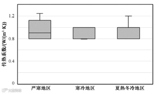 严寒和寒冷地区外窗的传热性能对冬季降低供暖需求有着重要意义,目前我国北方地区示范项目外窗传热性能基本可以达到0. 8~1. 0,较节能通用规范提升58%~60%,夏热冬冷和夏热冬暖气候区示范项目传热系数也控制在1. 2以下。