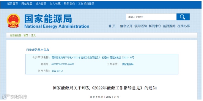国家能源局关于印发《2022年能源工作指导意见》的通知