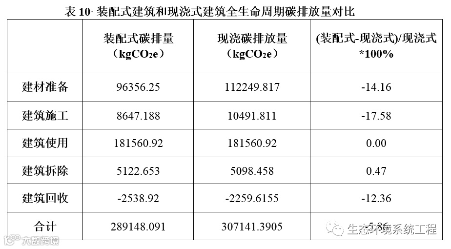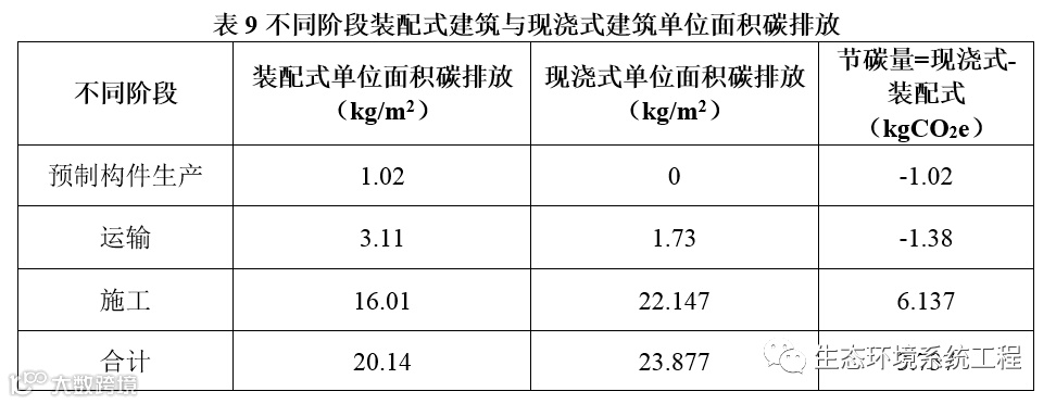 由此可知,装配式建筑在施工阶段具有较强的节碳优势。最终结果表明装配式建筑与现浇式建筑相比具有节碳优势。