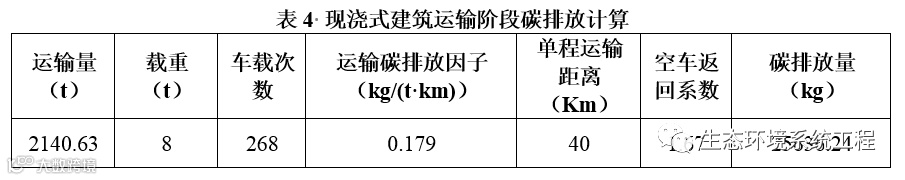 2、现浇式与装配式建筑进行运输阶段的碳排放