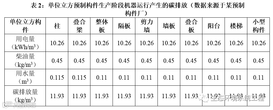 1、预制构件生产阶段的碳排放(来源:流水生产线上机器运行所产生的碳排放和生产构件的碳排放)