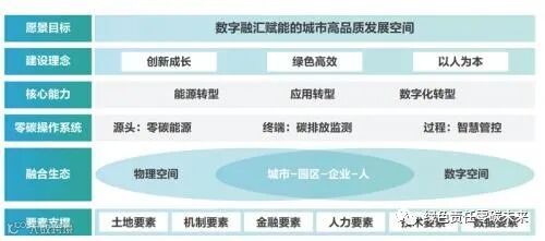 在白皮书看来,零碳智慧园区是指在园区规划、建设、管理、运营等过程中,全方位、系统性融入“碳中和”理念,依托零碳操作系统,以“精准化核算”探索目标设定和实践路径,以泛在化感知全面监测碳元素生成和消减过程,以以数字化手段整合节能、减排、固碳、碳汇等“碳中和”措施,以智慧化管理实现产业低碳化发展、能源绿色化转型、设施集聚化共享、资源循环化利用,最终实现园区内部碳排放与吸收自我平衡,生产生态生活深度融合。
