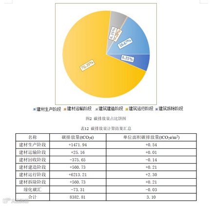 软件目前支持计算的是建筑全生命周期的碳排放总量,包含建材生产及运输阶段、建造阶段、运行阶段、拆除阶段的分阶段碳排放输出;运行阶段支持多种冷热源机组、多种空调系统设置与分析;支持可再生能源、绿色植被(碳汇)等节碳、减碳、碳中和等控制措施的优化计算;结果分析界面中展示详细图标,包含各阶段总碳排放量、单位面积碳排放量、碳排放占比等结果,通过分部对比可实现优化设置和碳达峰预测需求。附:碳排放软件PKPM-CES报告书详细界面: