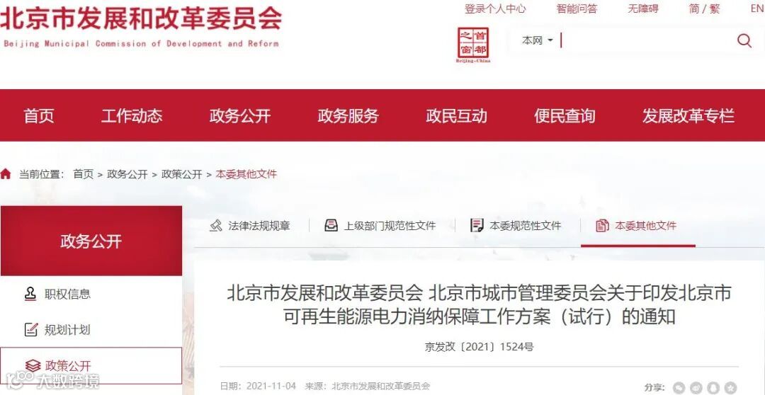 北京市发改委近日印发《北京市可再生能源电力消纳保障工作方案(试行)》,探索建立全市可再生能源电力消纳保障机制,以实现“十四五”时期全市可再生能源消费比重达到14%的目标。