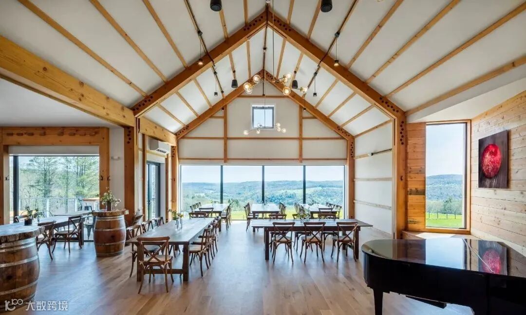 Seminary Orchard & Cidery 占地 9,300 平方英尺,设有有机硬苹果酒生产设施、品酒室、商业厨房和活动空间。River Architects 的设计是对整个哈德逊河谷谷仓的致敬,正如新闻稿所描述的那样,这是“一座建在山坡上的经典‘银行谷仓’,它有着现代风格”,是总部位于哈德逊河谷的Baxter建造了这个苹果酒厂。