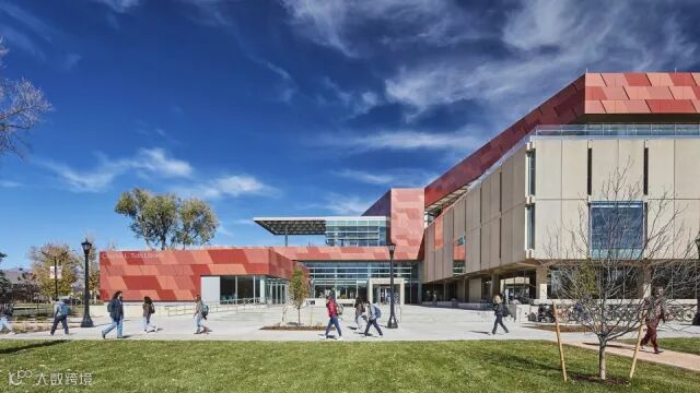 美国科罗拉多大学Tutt图书馆为Walter Netsch于1962年设计建造,包含当时所有当代校园建筑主要的形式特征。建筑内向,呈现野兽派风格。一个神秘的混凝土盒子飘浮在玻璃墙面上,由抽象的柱基支撑,与基地分离。