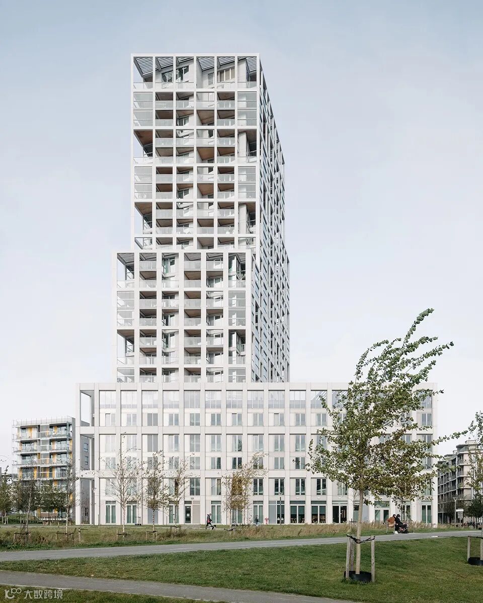 安特卫普南部开发区的新项目之一,也是斯海尔德河沿岸的新兴住宅区。这座80米高的塔楼内设有综合酒店,并且以标志性的双层立面及其与周围环境的对话脱颖而出。