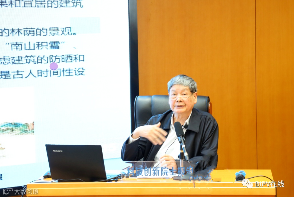 吴硕贤称:“建筑的运行能耗占到了总能耗的25%,我们建筑只要能耗降低一半就不得了了,要多少的电站才能达到。这还没有包括建筑材料,如果把建筑材料加进去是半壁江山了,碳排放占了40%多。所以绿色建筑是(减碳)最大的行业之一。”