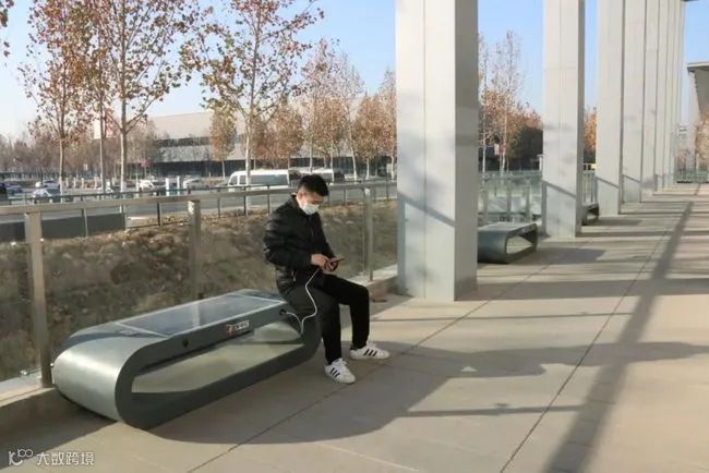 这可不是普通的座椅。椅子坐的那个面就是光伏板,可以实现手机无线充电或者有线充电。