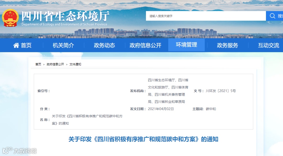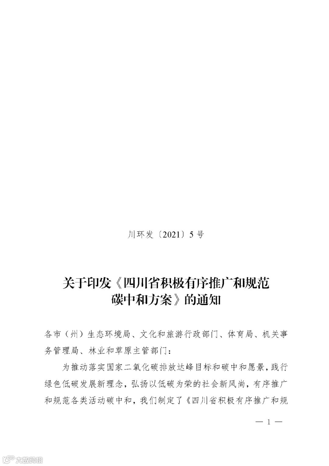 附件:川环发〔2021〕5号 (联合)关于印发《四川省积极有序推广和规范碳中和方案》的通知