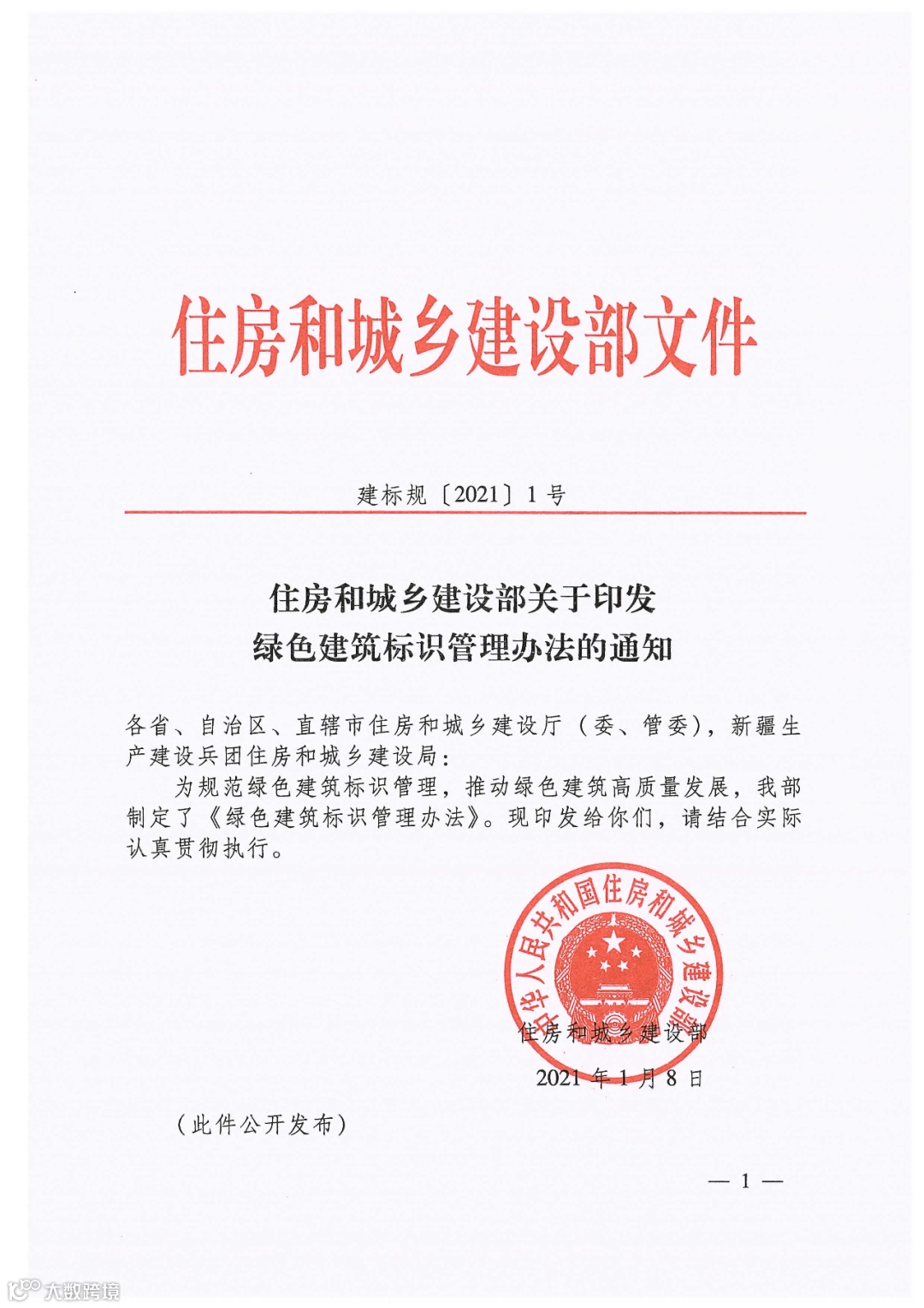 现将《住房和城乡建设部关于印发绿色建筑标识管理办法的通知》(建标规[2021]1号)转发给你们,并提出以下意见,请一并贯彻执行。