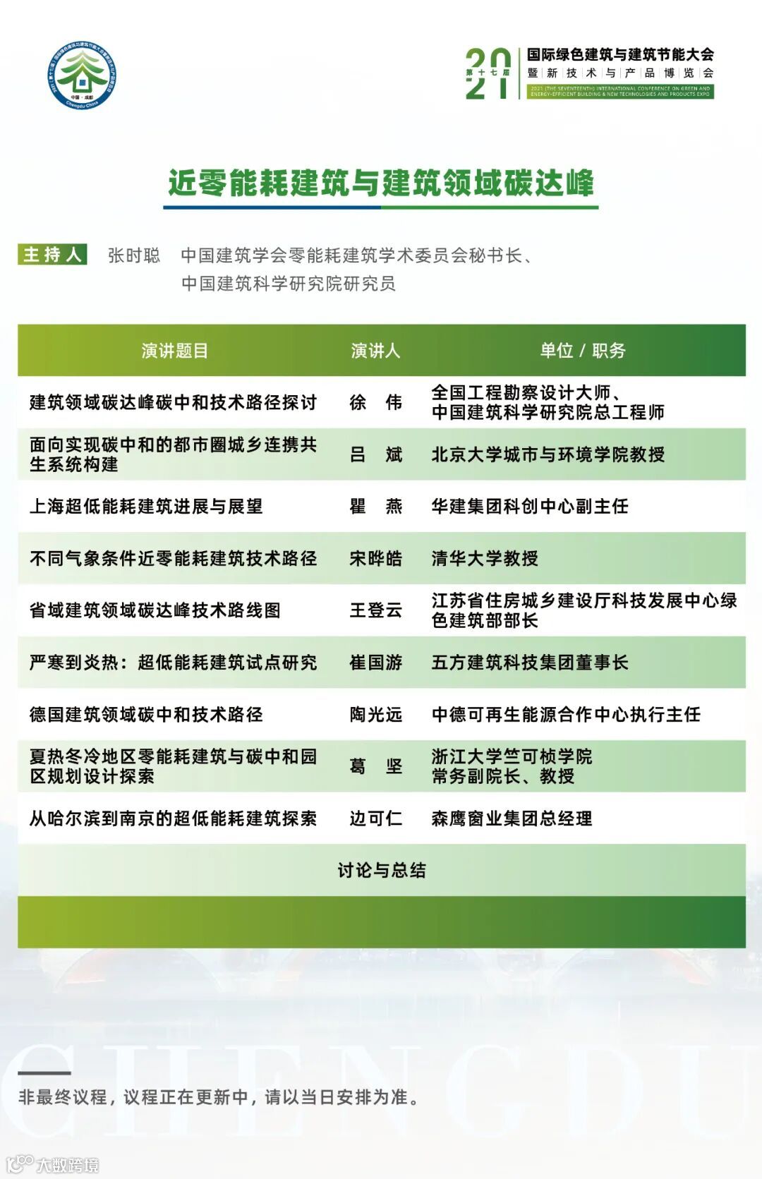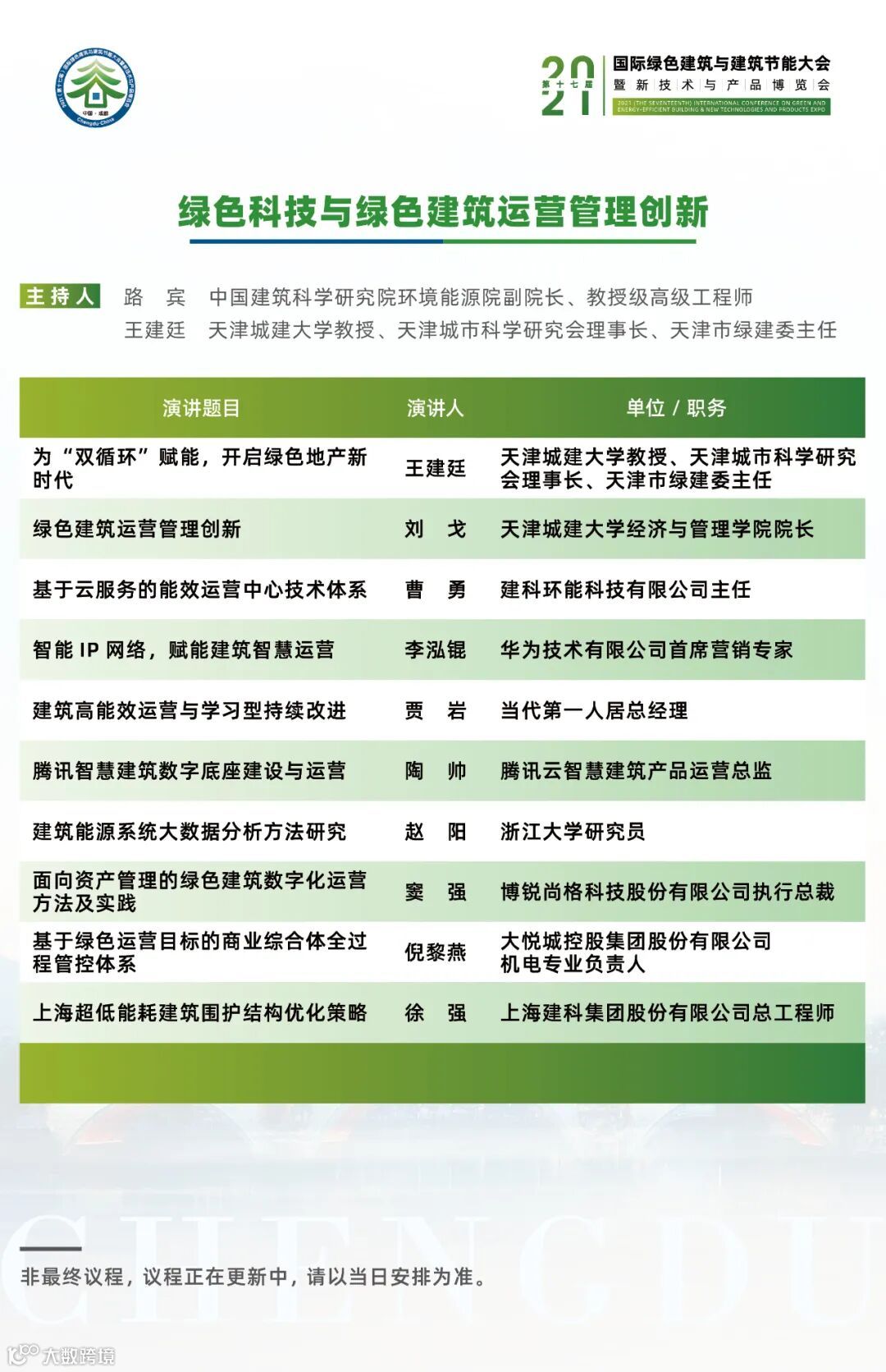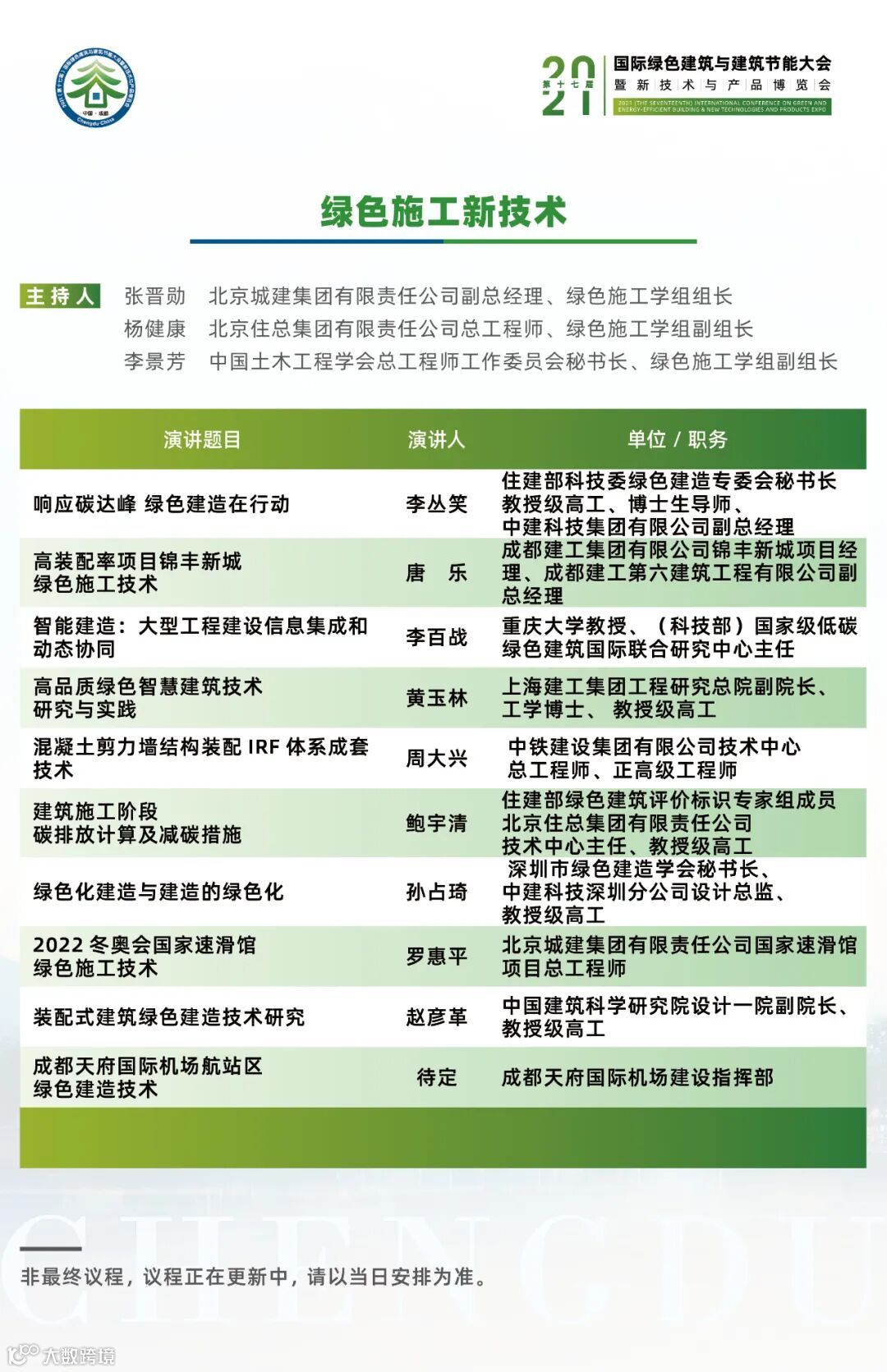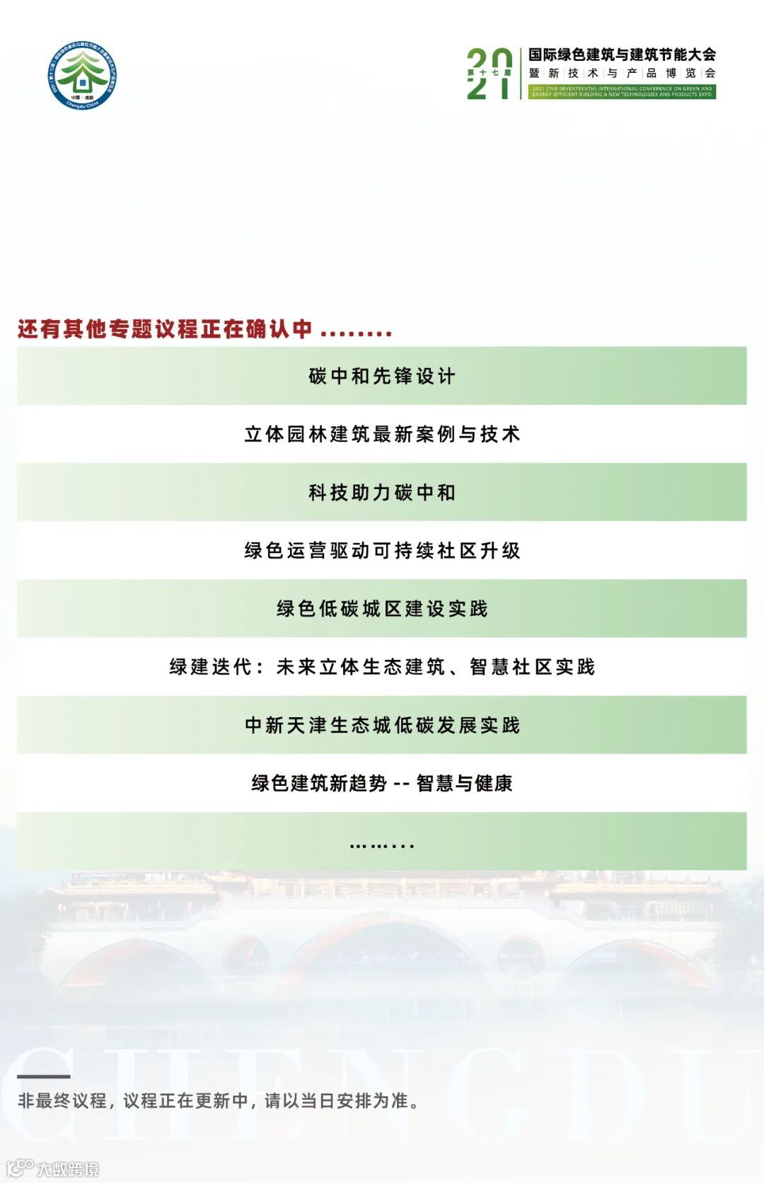 以“聚焦建筑碳中和,构建绿色生产生活新体系”为主题,“2021(第十七届)国际绿色建筑与建筑节能大会暨新技术与产品博览会”将于2021年5月18日至19日在西部中心城市——成都召开。