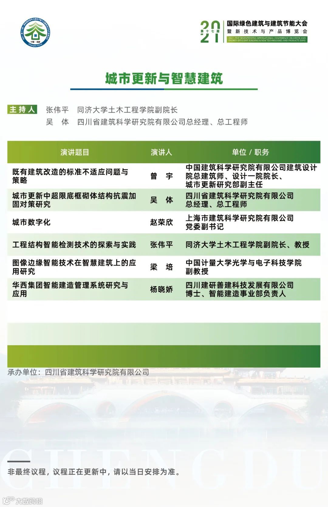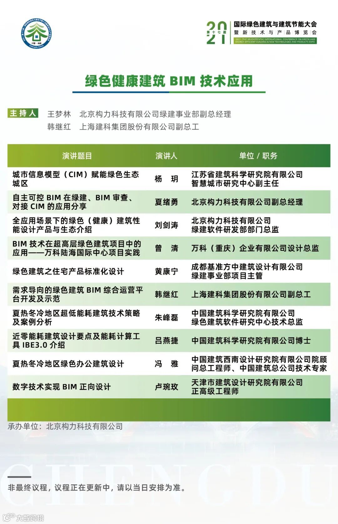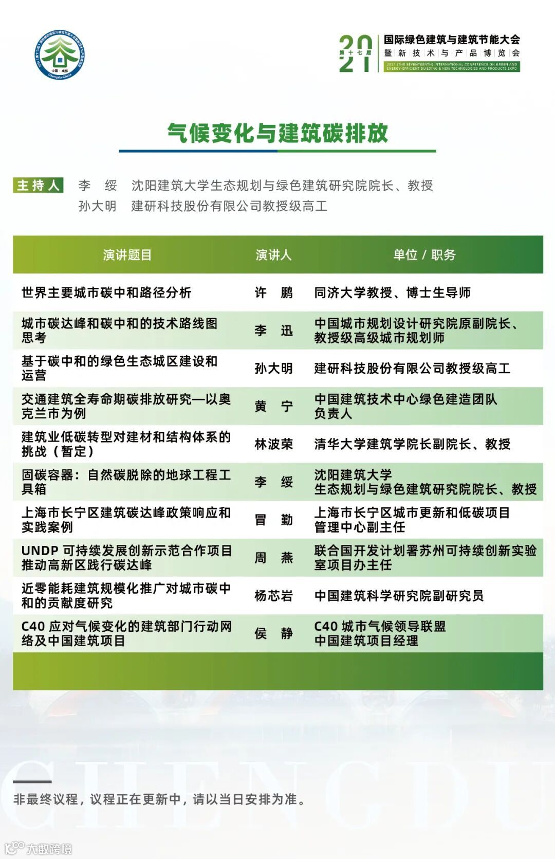 以“聚焦建筑碳中和,构建绿色生产生活新体系”为主题,“2021(第十七届)国际绿色建筑与建筑节能大会暨新技术与产品博览会”将于2021年5月18日至19日在西部中心城市——成都召开。