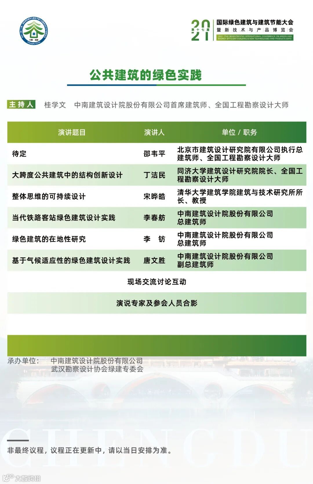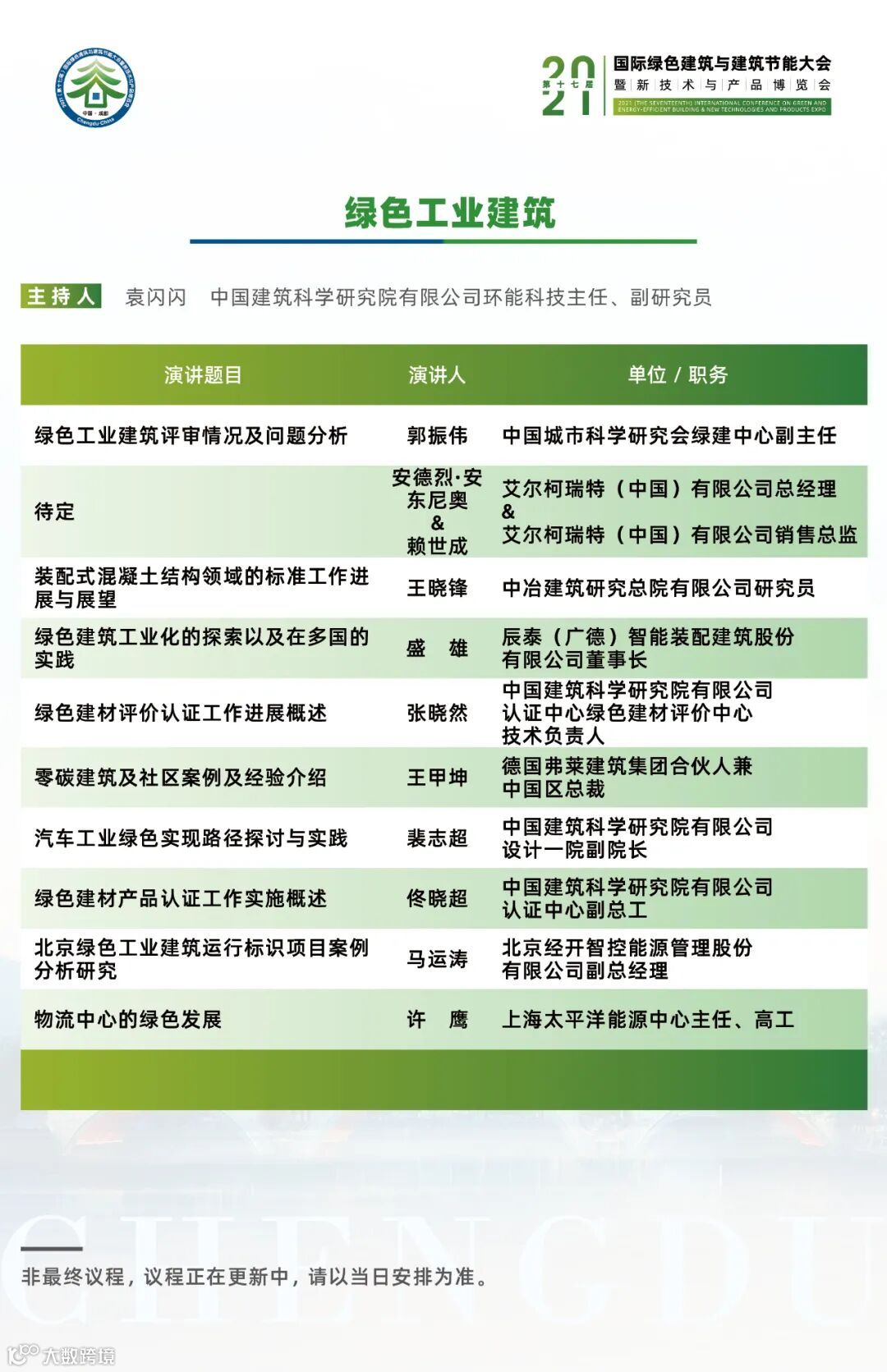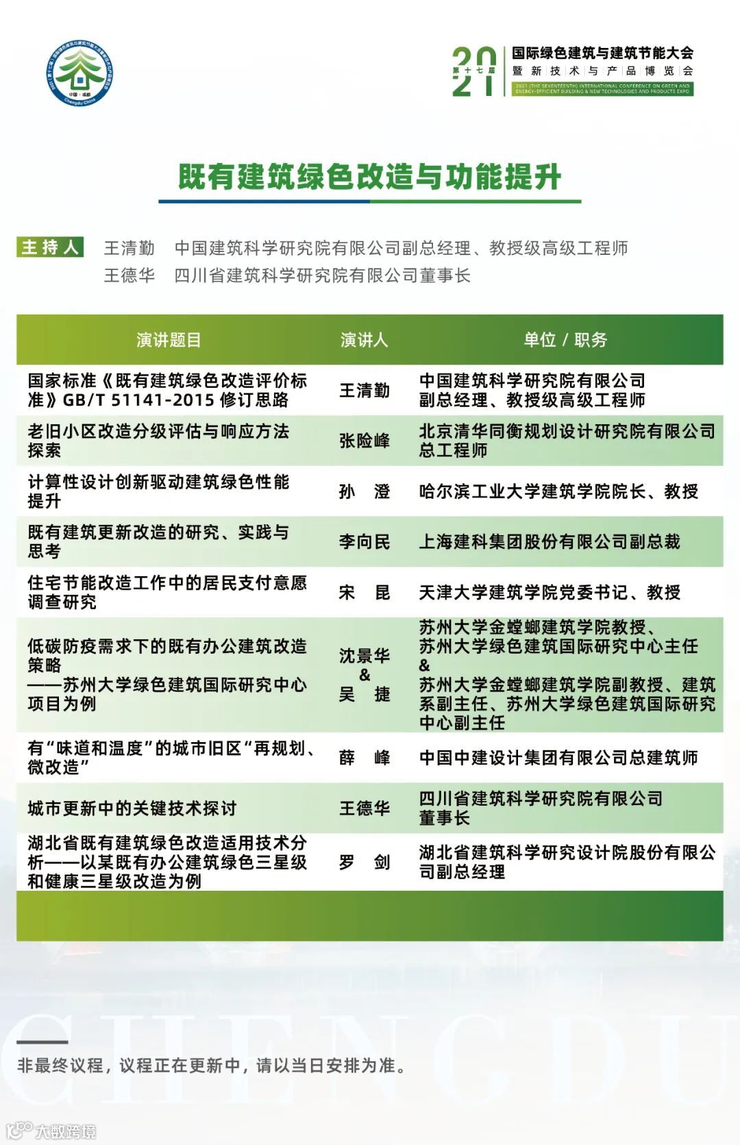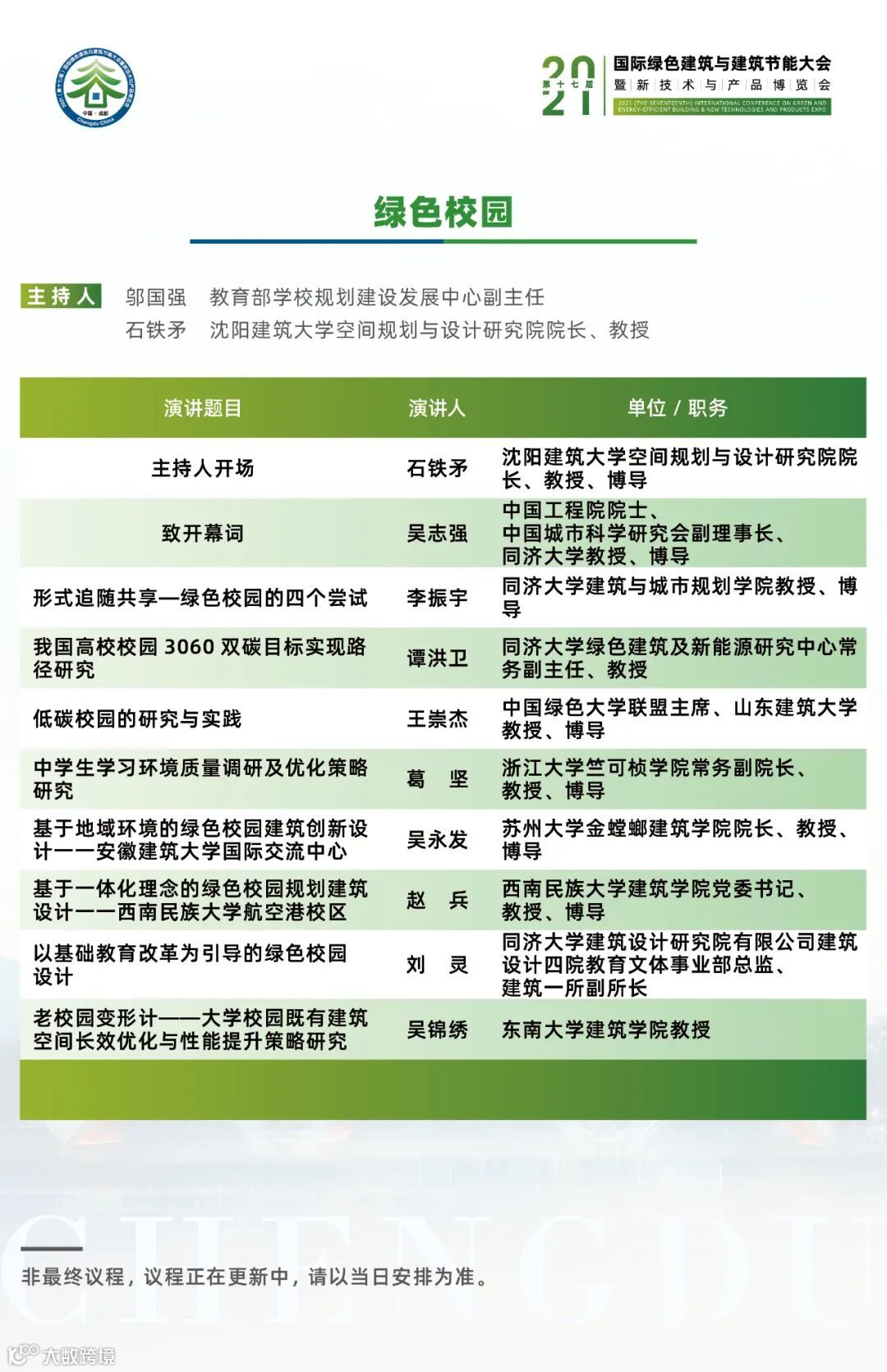 以“聚焦建筑碳中和,构建绿色生产生活新体系”为主题,“2021(第十七届)国际绿色建筑与建筑节能大会暨新技术与产品博览会”将于2021年5月18日至19日在西部中心城市——成都召开。