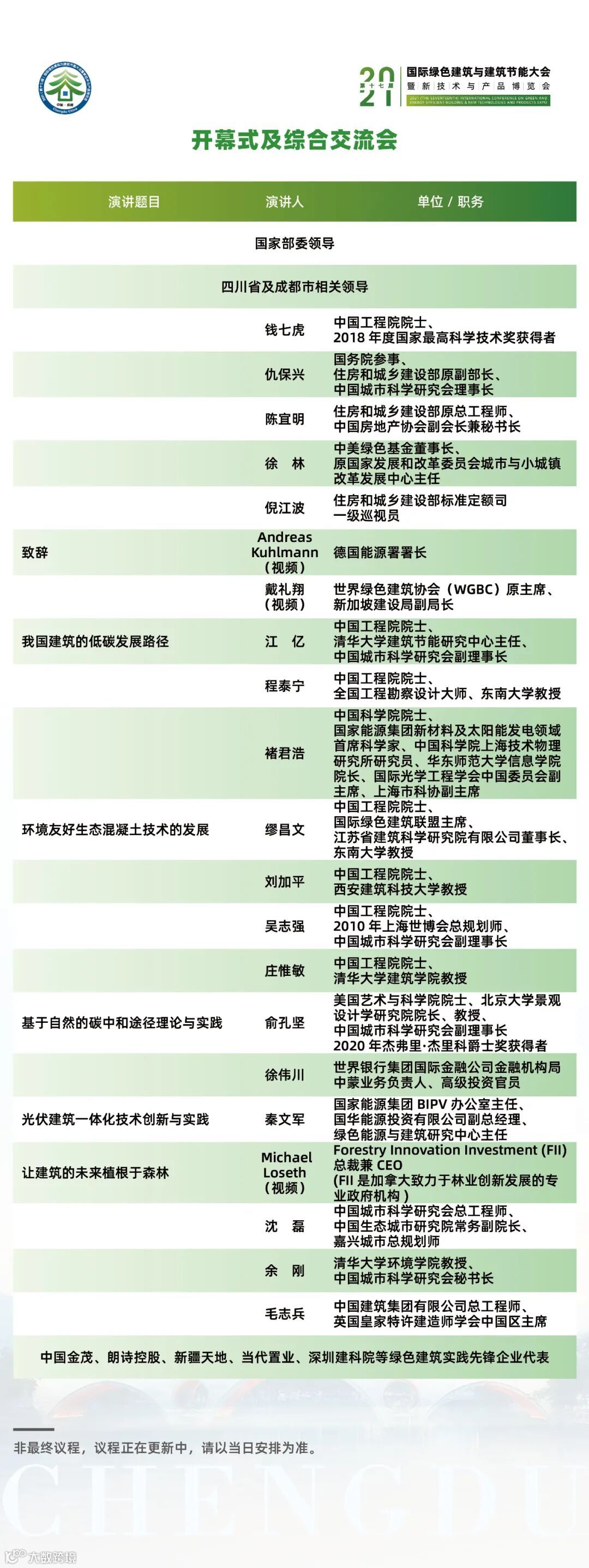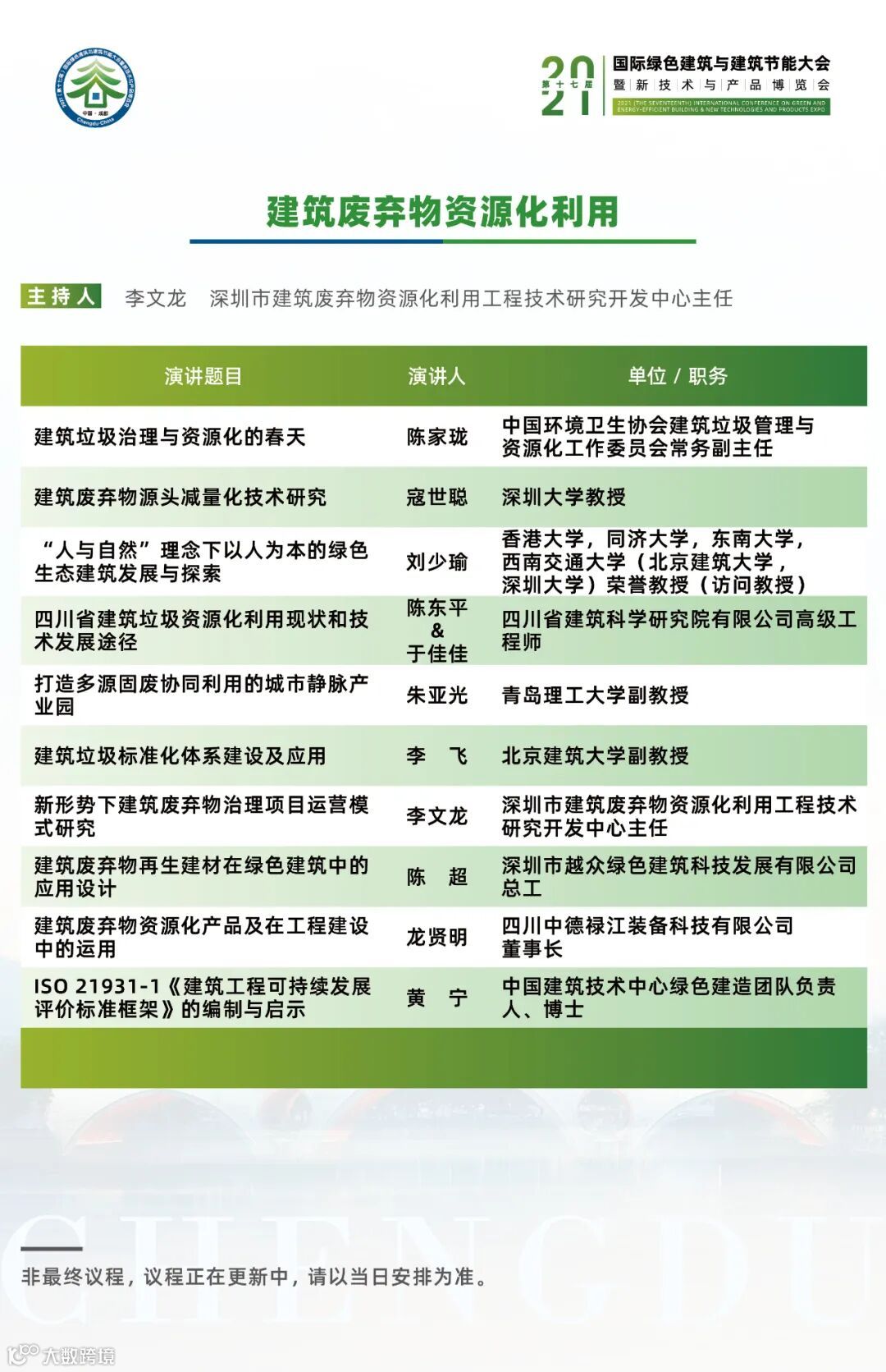 同期召开国际绿色建筑新技术与产品博览会,展览面积2万平米,数百家企业事业单位参与展示,预计观众数万人次。
