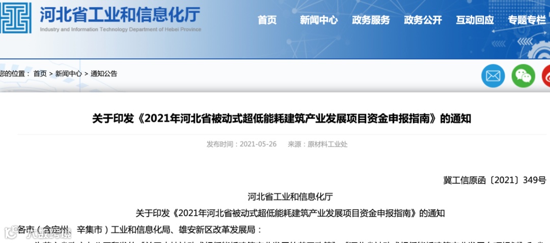 关于印发《2021年河北省被动式超低能耗建筑产业发展项目资金申报指南》的通知