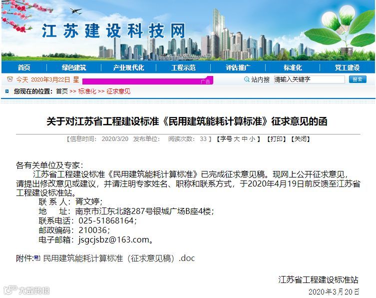 江苏省工程建设标准《民用建筑能耗计算标准》已完成征求意见稿。现网上公开征求意见,请提出修改意见或建议,并请注明专家姓名、职称和联系方式,于2020年4月19日前反馈至江苏省工程建设标准站。