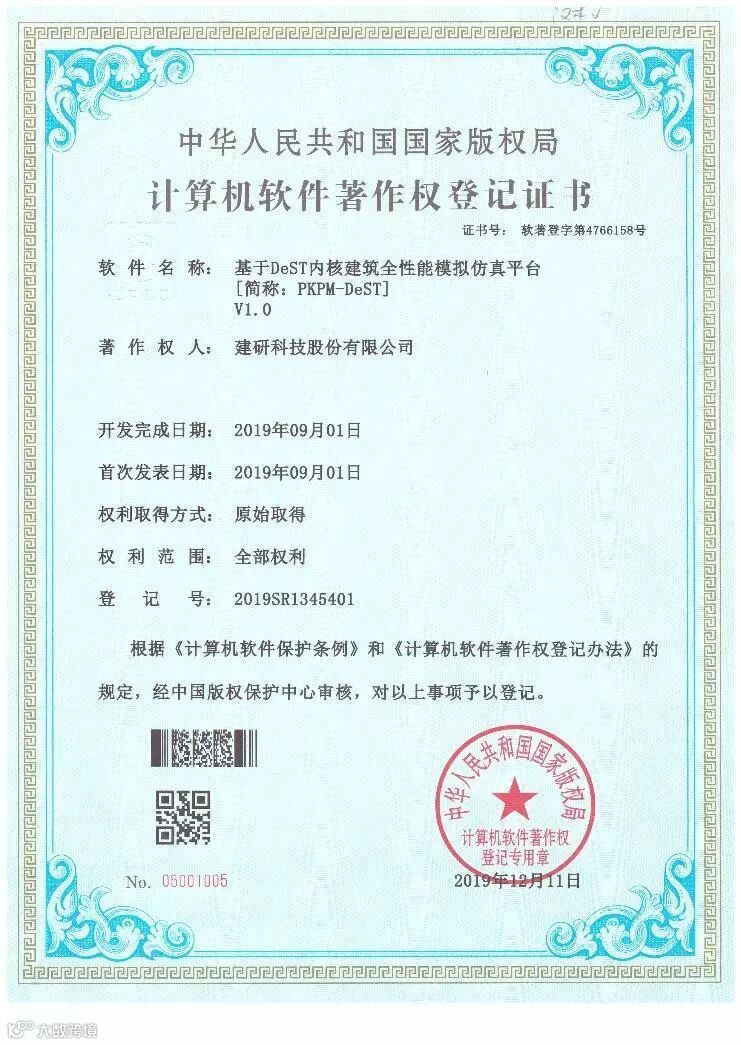 导读:2019年12月,我司正式获得了“基于DeST内核建筑全性能模拟仿真平台PKPM-DeST”著作权证书。该软件在原有DOE能耗模拟内核基础上,新增的由我国清华大学自主研发的DeSTV3.0内核产品,用