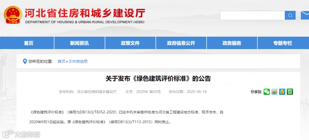 河北省《绿色建筑评价标准》已发布,9月1日起实施