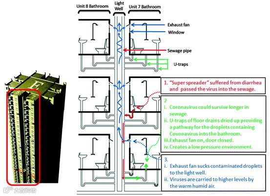 ▲ 点击上方蓝字,关注PKPM绿色建筑! 作为与城市和建筑高度关联的群体,建筑师能为居家隔离做些什么呢?下面是我们的10条建议。 以史为鉴:淘大花园案例 2002年冬季非典在中国首先被发现,并迅速通过各种途径蔓延传染。它在2003年春季席卷中国,其传染性之猛、危害之大令人至今仍心有余悸。 淘大花园 2003年3月底,淘大花园暴发了一起人数众多、发病突然的SARS疫情。3月26日,港府卫生署证实,淘大花园座有5个家庭7人受感染。28日,淘大花园的感染人数大幅增加到63人。31日,感染人数再激增至213人!而到4月15日,淘大花园的感染人数竟达321人。在全港因”非典”死亡的296名病人名单中,”淘大花园”的居民就占了42人。 世界卫生组织在后来的调查报告中指出,3月底的不寻常非典爆发,可能由下列环境及卫生因素所造成: 1)多个住户的U形聚水器长期干涸,令聚水器丧失阻隔来自排污渠的飞沫的功能。 2)在住户的浴室门关上时,开动的浴室抽气扇,可能会将飞沫从排污渠抽进浴室内。 3)浴室抽气扇开动时,可能将浴室内的飞沫带到天井,令受污染的空气通过打开的窗户,进入相隔数层的住户。 4)淘大花园E座于2003年3月21日黄昏曾暂停厕所水供应达16小时,为8号住户出现裂缝的厕所水渠进行维修,此举令排污渠水流减慢,助长飞沫在渠内的流动。 5)另外,淘大花园住宅E座大楼也受到蟑螂老鼠的侵扰,停车场和排水口一带经常发现虫鼠肆虐,老鼠和蟑螂也可能是病毒的被动载体,在大楼内传播病毒。 6)风闸效应:淘大花园E座爆发大规模非典传播的原因之一,是因为楼与楼之间形成的风闸效应,由此加强了病毒的传播。由于淘大E座和F座之间的狭窄距离,加上刮东南偏东风,导致两座楼宇之间产生大约3m/s~5m/s的快速气流,并急速地掠过E、F座之间,形成了一堵风墙造成风闸效应,由此无形地封拦了E座7号和8号室之间仅阔1.5m的天井,使得天井内空气的横向流动非常缓慢。这样,排放至天井中的微细水珠如果含有病毒,便会徘徊不散,只能上下流动,增加了进入其他楼层的机会。 致谢:感谢上海现代设计集团建设咨询有限公司暖通专业副总工程师顾懿卿为本文提供的帮助。参考资料:《透过“淘大花园”事件解析住宅问题》,作者:开彦,《规划师》2003年第B06期《建筑应对“非典"的思考》,作者叶耀先,《城市开发》Li, Y., et al. "Multi-zone modeling of probable SARS virus transmission by airflow between flats in Block E, Amoy Gardens." Indoor air 15.2 (2005): 96-111.Cherry, James D., and Paul Krogstad. "SARS: The First Pandemic of the 21 st Century." Pediatric research 56.1 (2004): 1-5.Yu, Ignatius TS, et al. "Evidence of airborne transmission of the severe acute respiratory syndrome virus." New England Journal of Medicine 350.17 (2004): 1731-1739.Lee, Shiu-Hung. "The SARS epidemic in Hong Kong." Journal of Epidemiology & Community Health 57.9 (2003): 652-654.Gormley, Michael, et al. "Pathogen cross-transmission via building sanitary plumbing systems in a full scale pilot test-rig." PloS one 12.2 (2017). 病毒无情人有情,PKPM与您一起!承诺提供免费授权码 保证无间断服务文中联系方式领取 守望相助 众志成城 -PKPM构力学堂0元起100万份在线课程任意领点击上面标题领取 充电专区:PKPM构力学堂