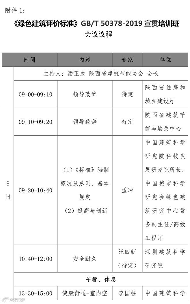 新修订的国家标准《绿色建筑评价标准》(GB/T50378-2019)已由住房和城乡建设部正式发布,自2019年8月1日起实施。为做好该标准的贯彻实施,使有关人员深入理解、准确把握标准相关要求,推进我国绿色建筑发展,兹定于2019年7月8日至9日在西安召开标准宣贯培训会议。现将有关事项通知如下: