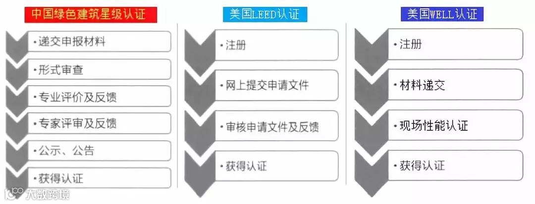 中国《绿色建筑评价标准》将绿色建筑划分为一星级、二星级、三星级绿色建筑,知名度和应用范围最广。其次是美国LEED标准,近些年也有广泛的市场需求,尤其在一线大城市。在2015年,美国WELL建筑标准又开始进入中国市场,引起了很大关注。