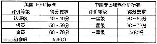 中国绿标VS美国LEED等级划分