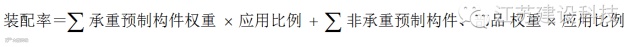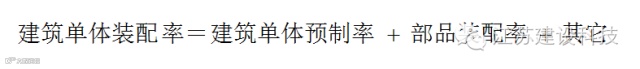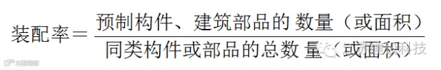 装配率——工业化建筑中预制构件、建筑部品的数量(或面积)占同类构件或部品总数量(或面积)的比率。(实际评价规则中,不含已经算预制率的构件)