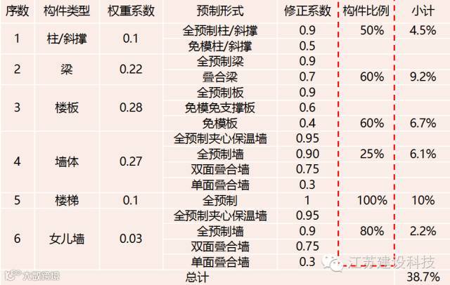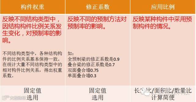 4.不同体系的装配率计算权重系数有所区别,体现难易程度