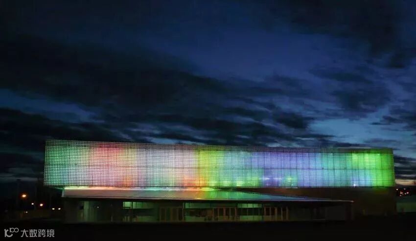 2007 年建成的音乐厅,通过在混凝土墙中置入特殊形状的玻璃砖,获得在夜晚可以发出五颜六色光彩的效果 ▼