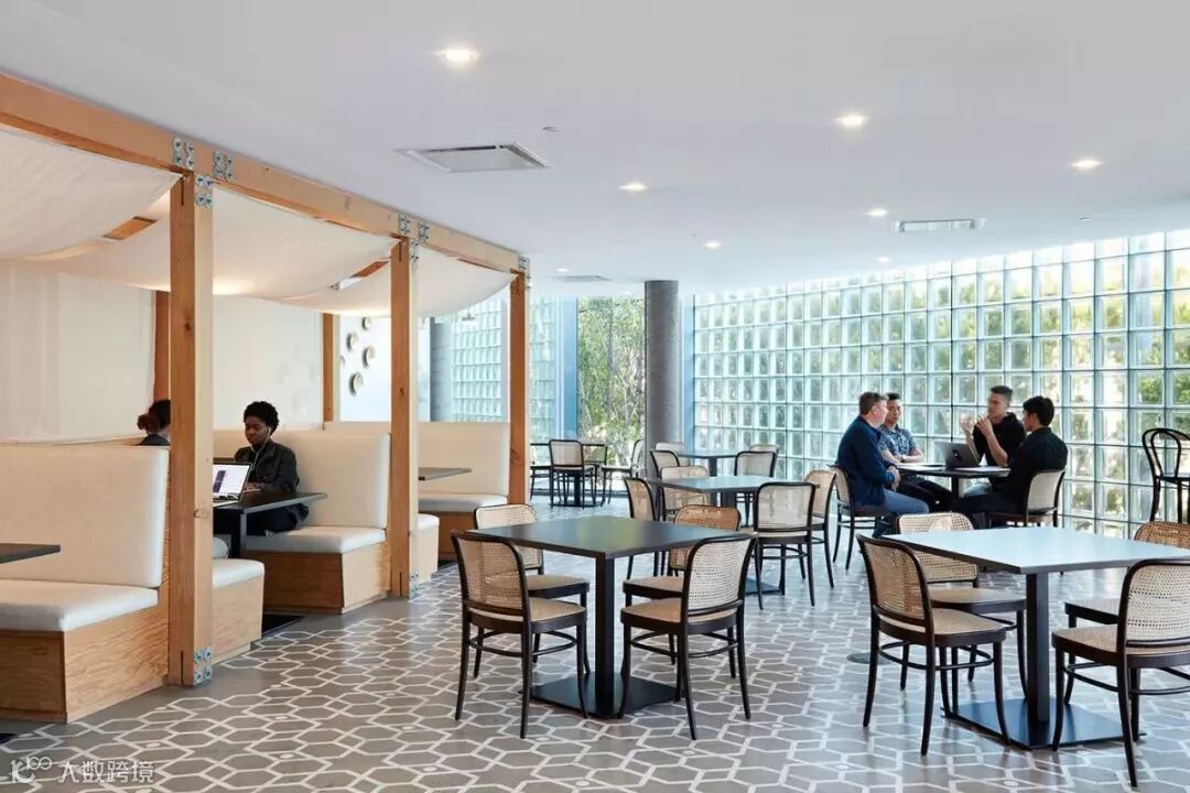 玻璃砖墙将光线引入办公室,凸显出室内的色彩搭配,舒适宜人 ▼