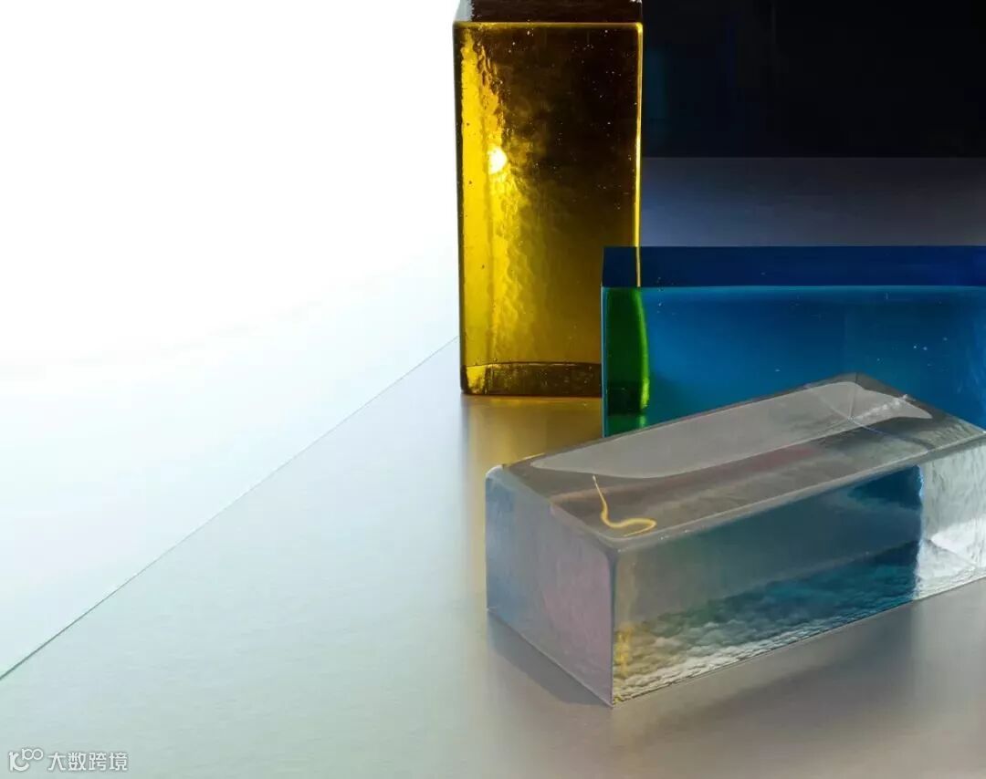 玻璃砖并不只有透明一种,经过处理,玻璃砖内部可以呈现不同的立体花纹与颜色 ▼