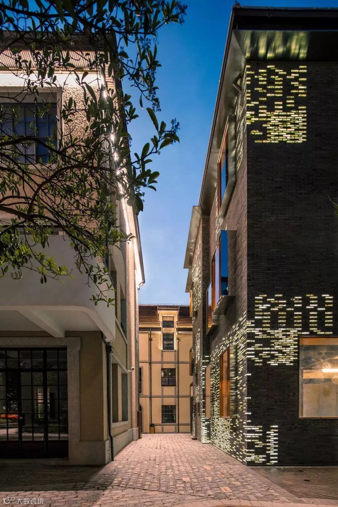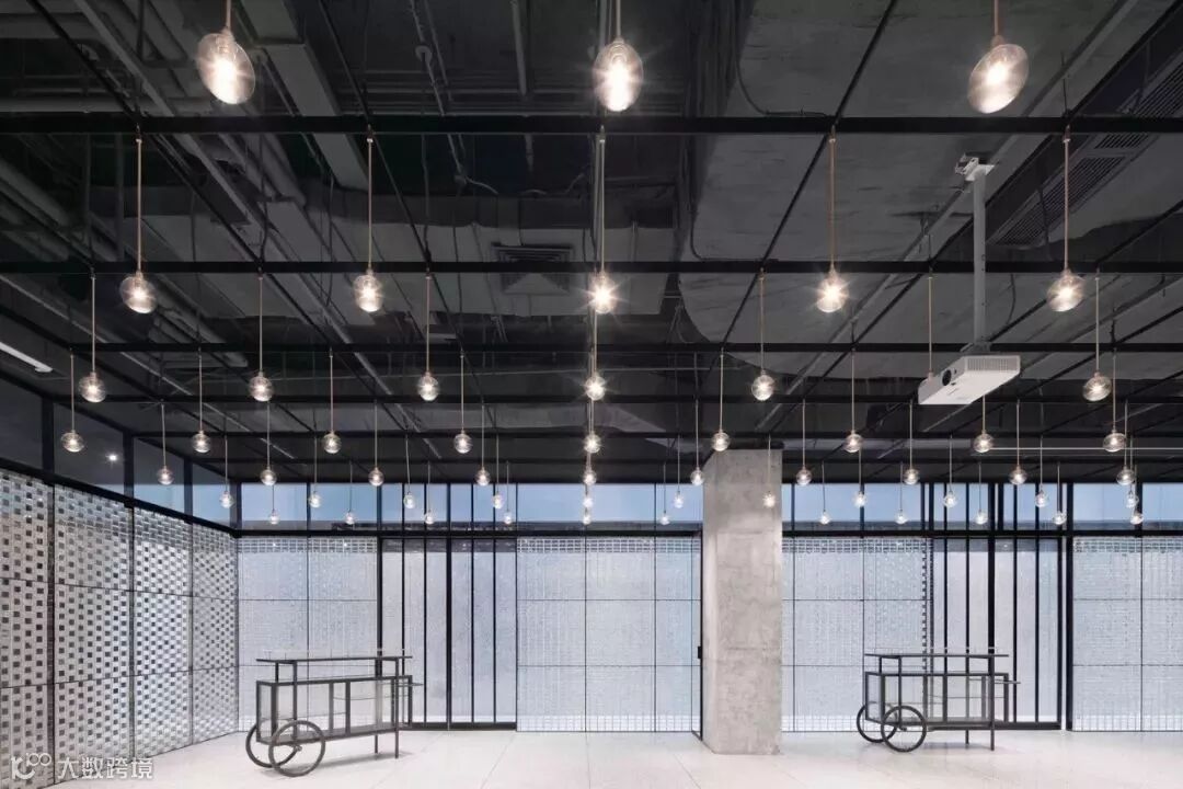 并且建筑师在玻璃砖后置了 LED 灯,到了夜晚便发出白色的冰冷光芒,质感十足 ▼