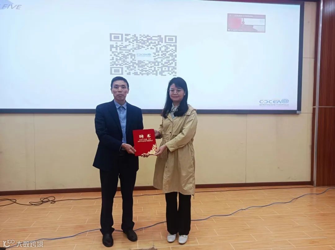 成都理工大学外国语学院院长刘永志为创新创业导师颁发了聘书。创新创业导师一是能将跨境电商行业专业知识与高校专业特点相结合,协助产教融合,立足大学生创新创业各阶段需求;二是能帮助青年参与跨境电商行业创业就业,指导就业上岗,通过思路引导,多种渠道帮助跨境电商创业者实现创业和就业